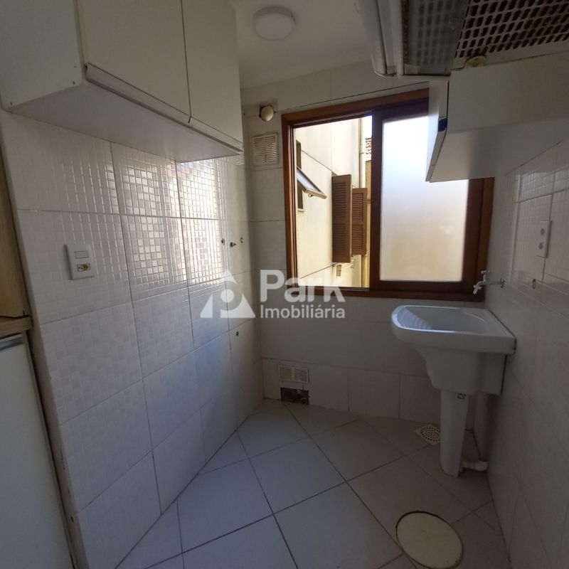 com tanque e conjugada com cozinha, banheiro social com box de vidro.