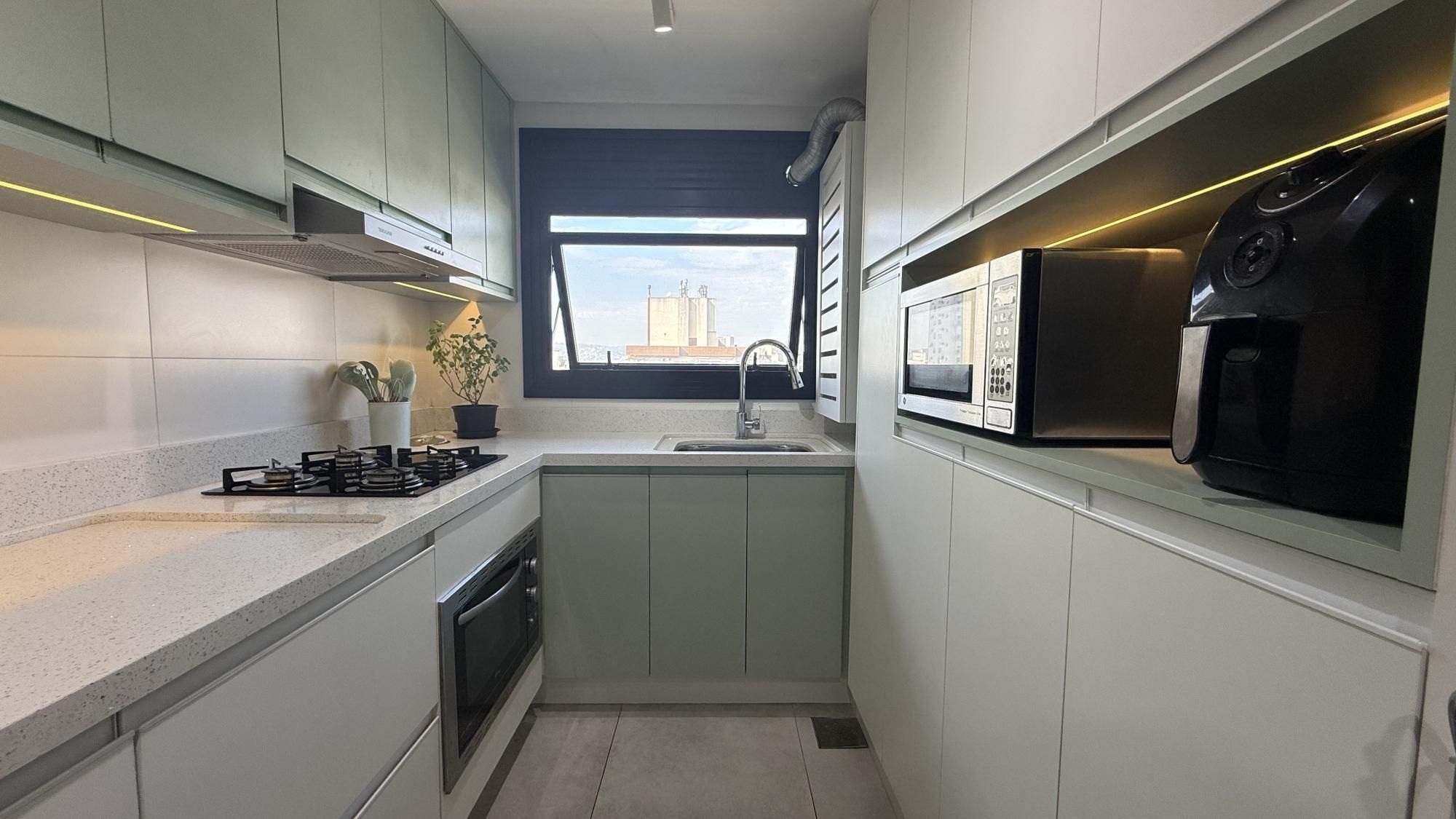 A sacada com churrasqueira é um dos destaques, ideal para aproveitar o pôr do sol com uma vista aberta — um diferencial que realmente impacta na decisão de compra.