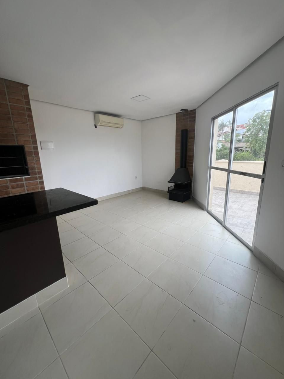 Sala ampla com lareira e ar-condicionado 12.000 BTUs