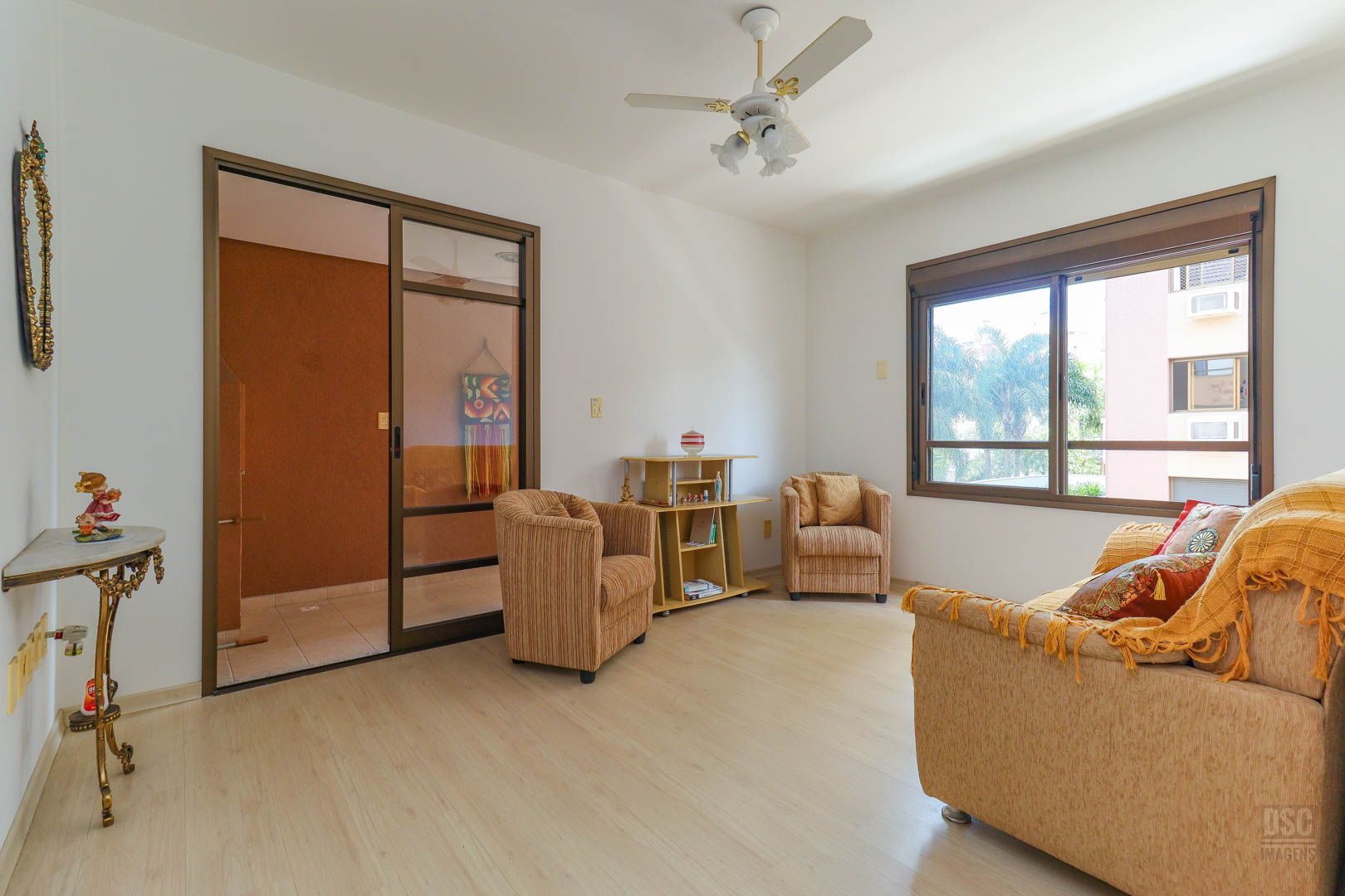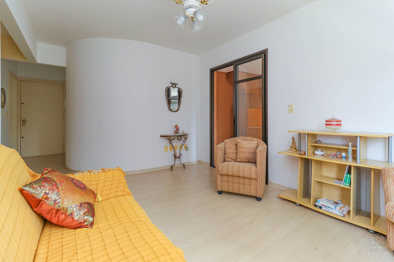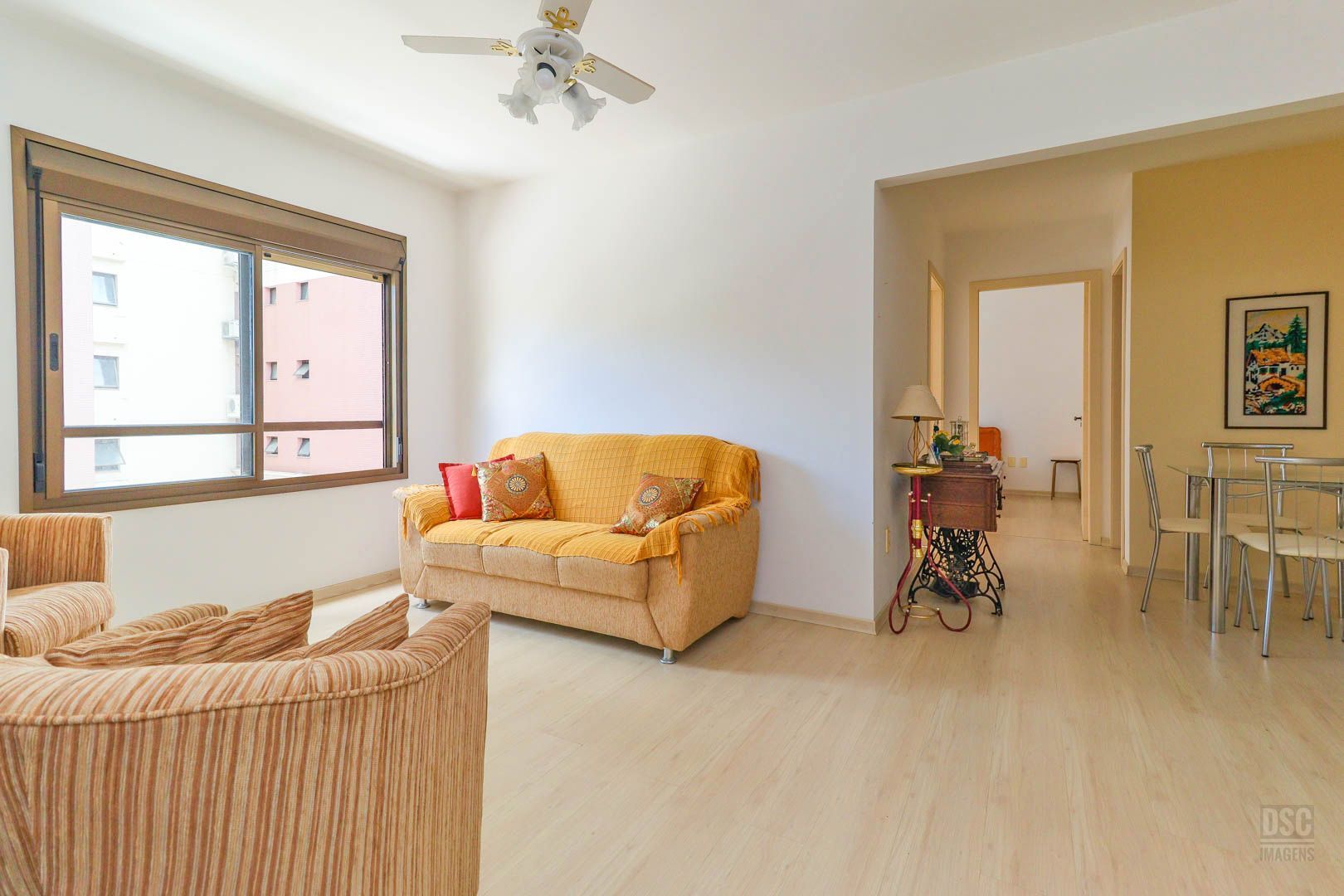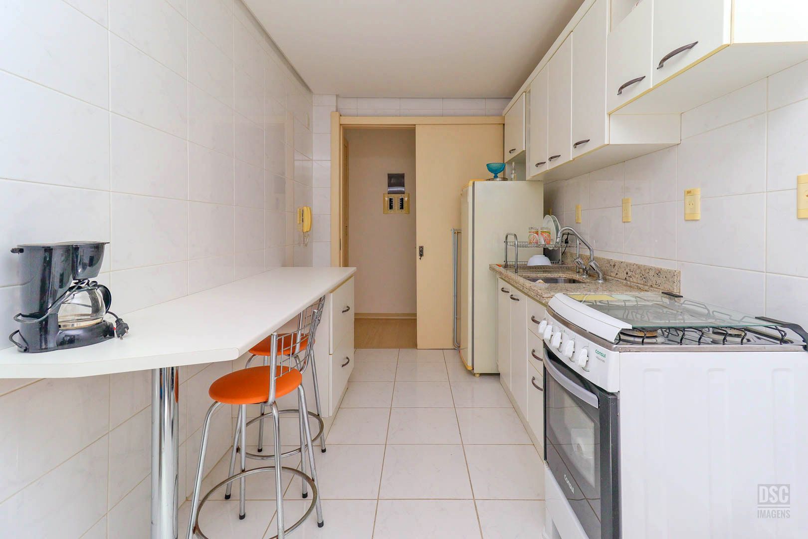 Apartamento de dois dormitórios, um banheiro, sala com dois ambientes, sacada fechada com churrasqueira (com possibilidade de integrar a sala), cozinha com área de serviço anexa, lateral, sol da tarde, bem iluminado e arejado, com uma vaga escriturada. Prédio com elevador, porteiro eletrônico,