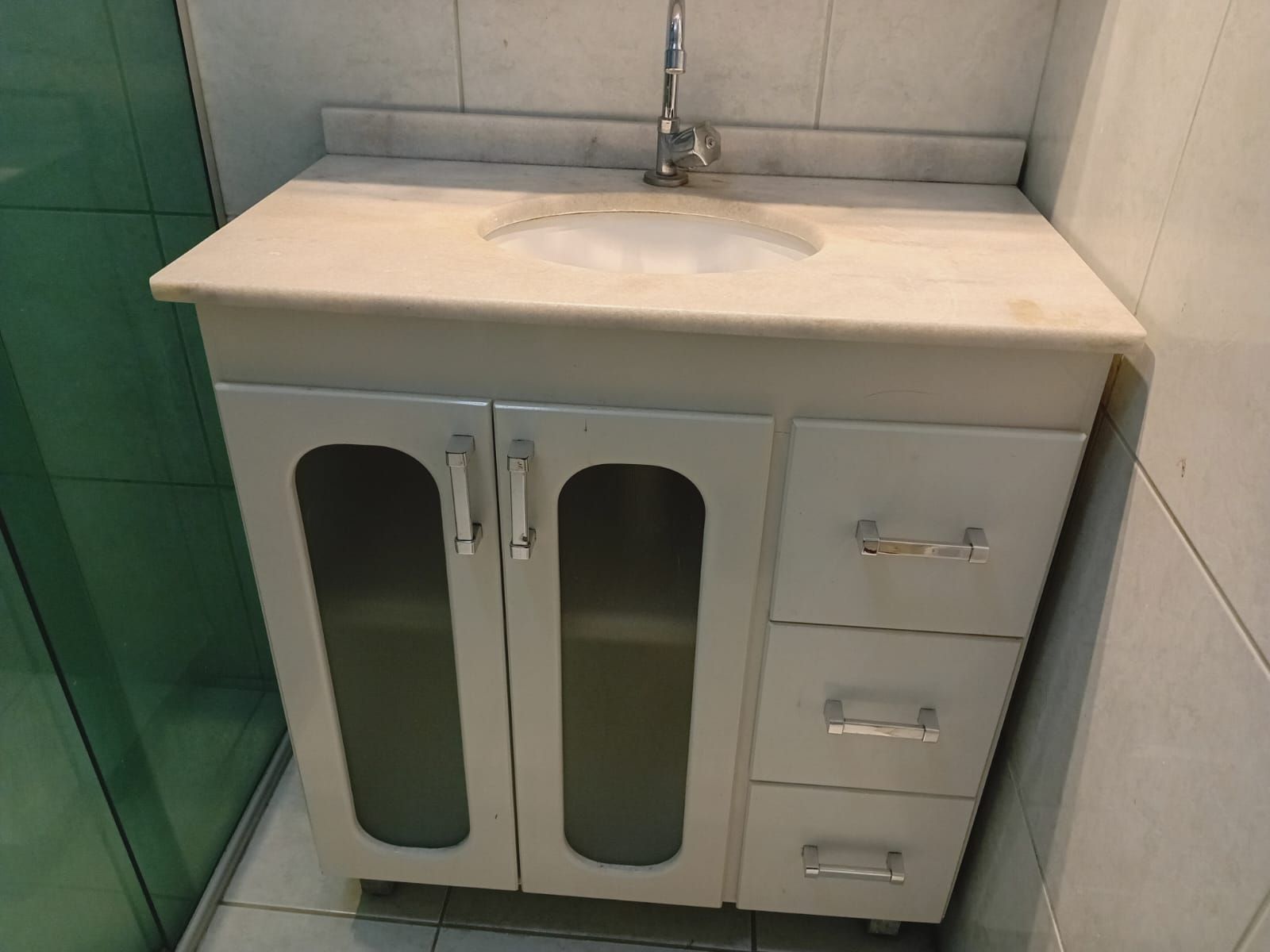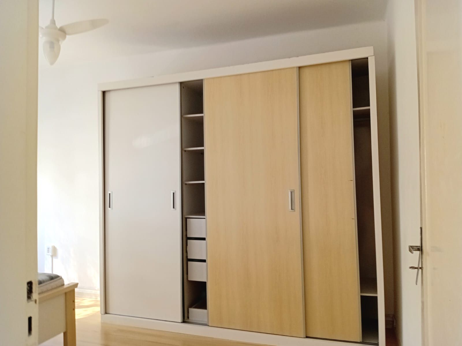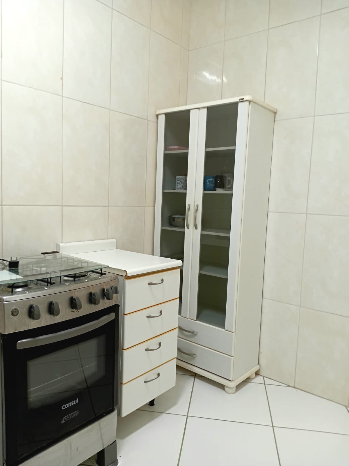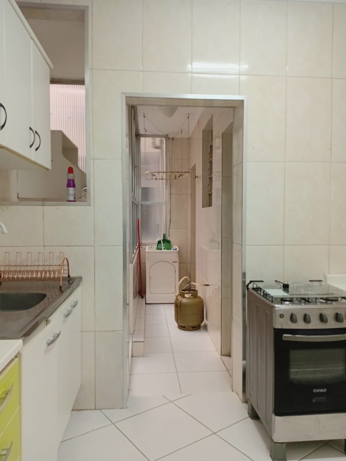 Cozinha com armários, fogão, pia, cristaleira, móvel de apoio com gavetas, área de serviço com tanque e varal, banheiro auxiliar, e uma ampla despensa, banheiro social com box de vidro, tampo da pia em mármore, (aparador que está na sala será retirado) quarto do meio conta com roupeiro em madeira e ventilador de teto, segundo dormitório conta com cama, roupeiro, cabideiro, ventilador de teto, o terceiro dormitório possui sacada, pode também ser uma sala para momentos de confraternização com a família e amigos.