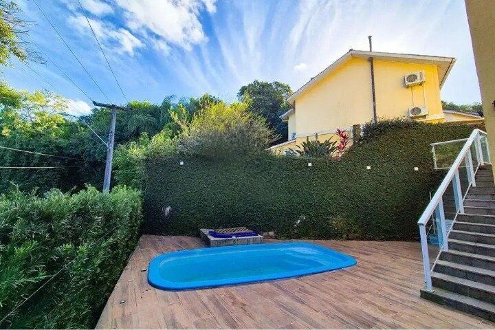 Condomínio Village lll, sobrado com 3 dormitórios, sendo 1 suíte, semi mobiliado, living amplo, lareira, lavabo, sótão que pode ser utilizado como estar intimo ,cozinha americana, banheiro, pátio, piscina, 2 churrasqueiras, placa solar, e vaga para dois carros.