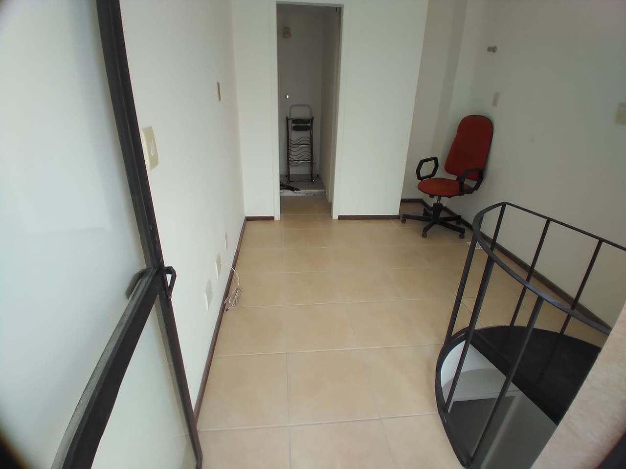 Piso inferior escritório grande de frente, bem iluminado e um banheiro.