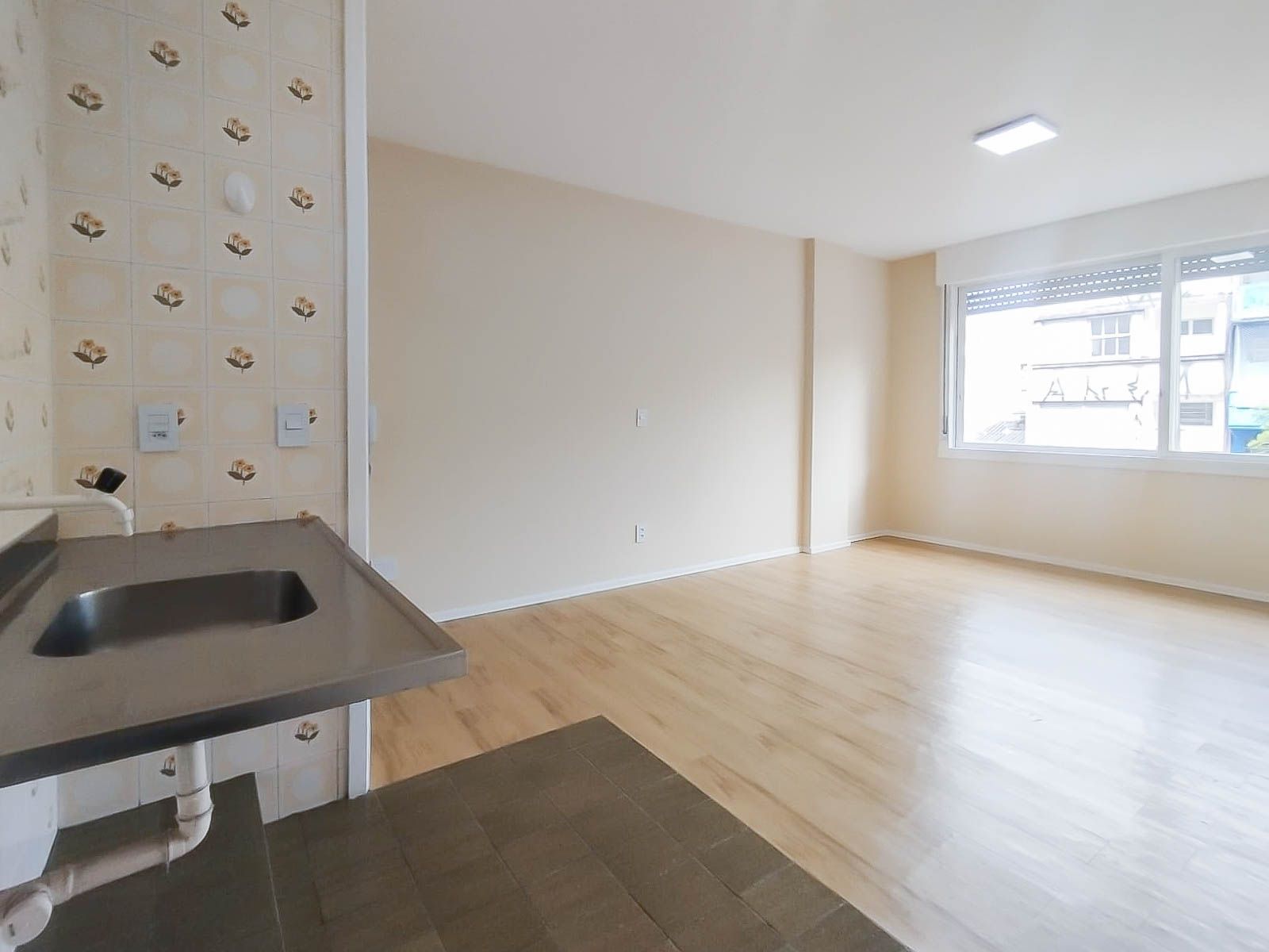 Possui ambiente amplo com excelente iluminação natural, piso em ótimo estado e vista aberta, garantindo ventilação e sensação de amplitude. A cozinha é funcional, com espaço bem definido, integrada ao living, ideal para o dia a dia.