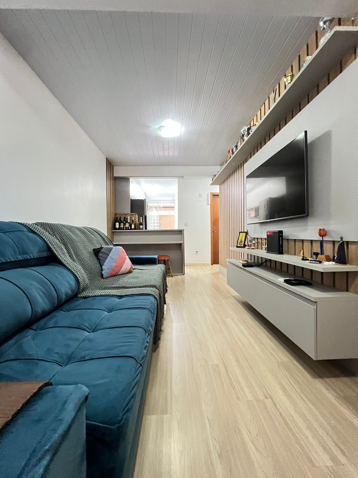 São 3 dormitórios amplos, bem arejados e iluminados — sendo o quarto do casal com isolamento acústico para garantir mais tranquilidade. Conta ainda com banheiro social com box de vidro, living estendido, cozinha planejada e uma agradável área externa com churrasqueira, banheiro e lavanderia.