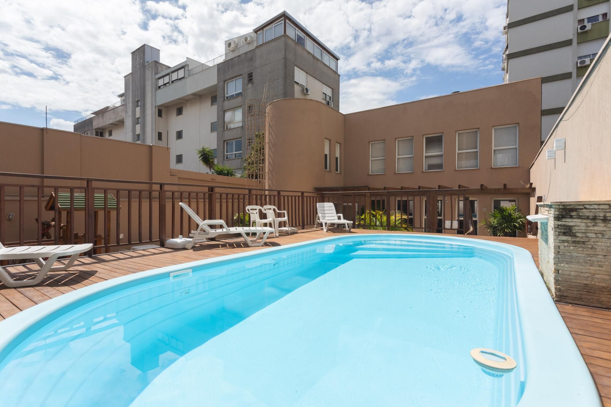 Apartamento muito ensolarado, com fundos voltados para a piscina do condomínio, proporcionando maior privacidade e boa iluminação natural.