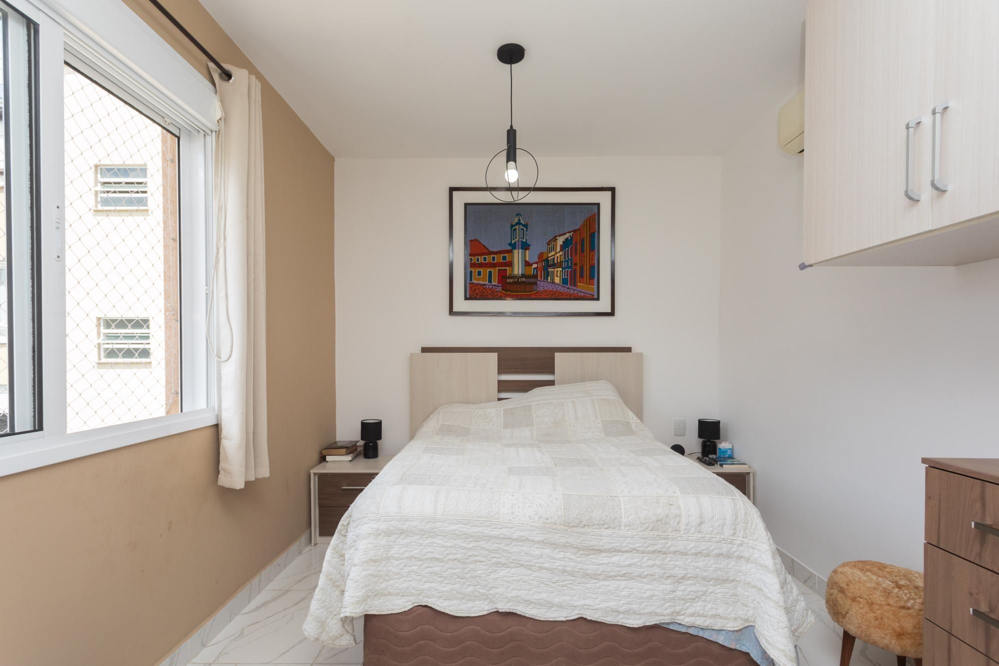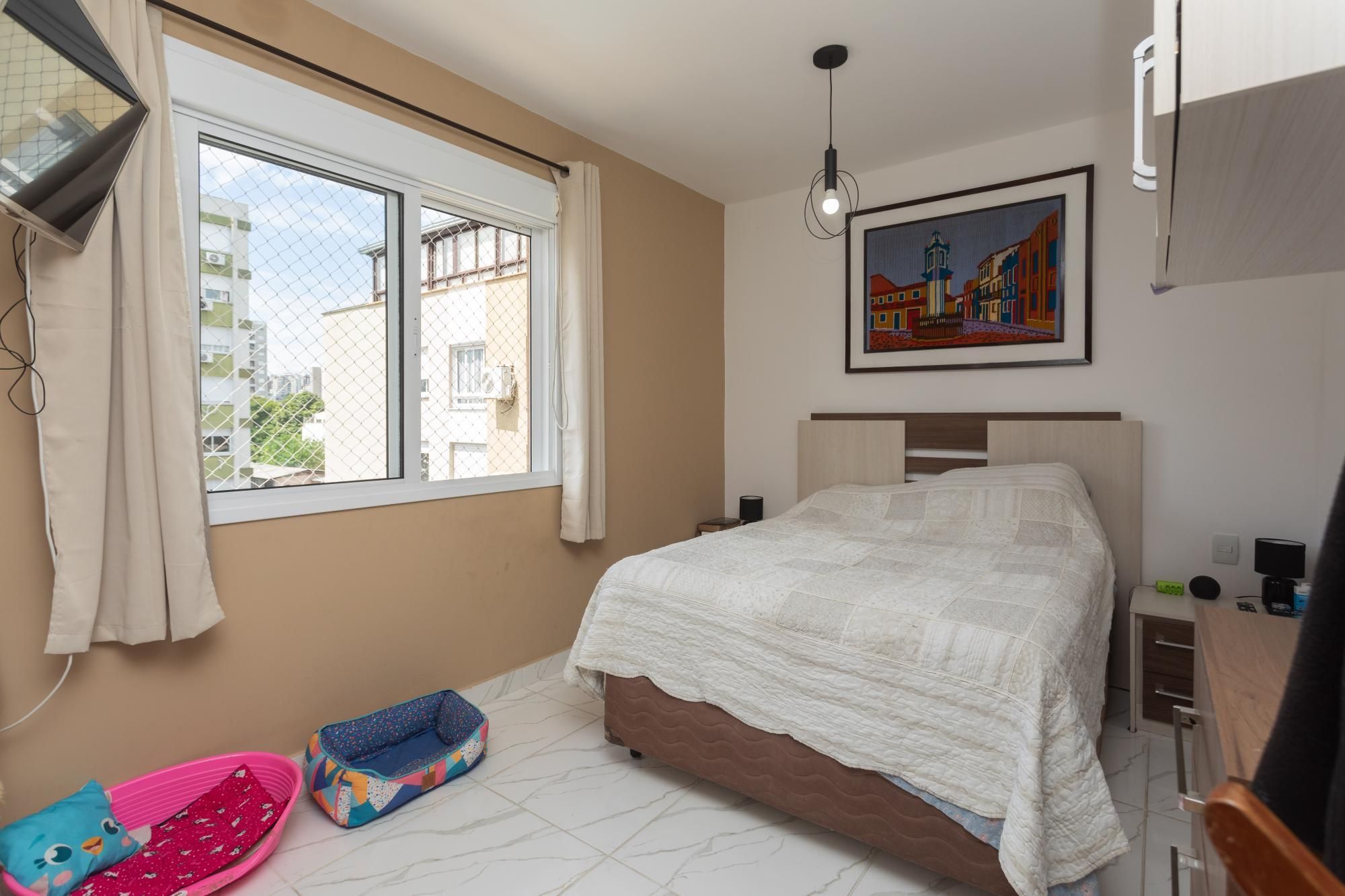 O imóvel conta com 3 dormitórios, sendo 1 suíte, banheiro social, ampla sala de estar com churrasqueira e cozinha funcional. Possui piso cerâmico, telas de proteção nas janelas e box de vidro nos banheiros.