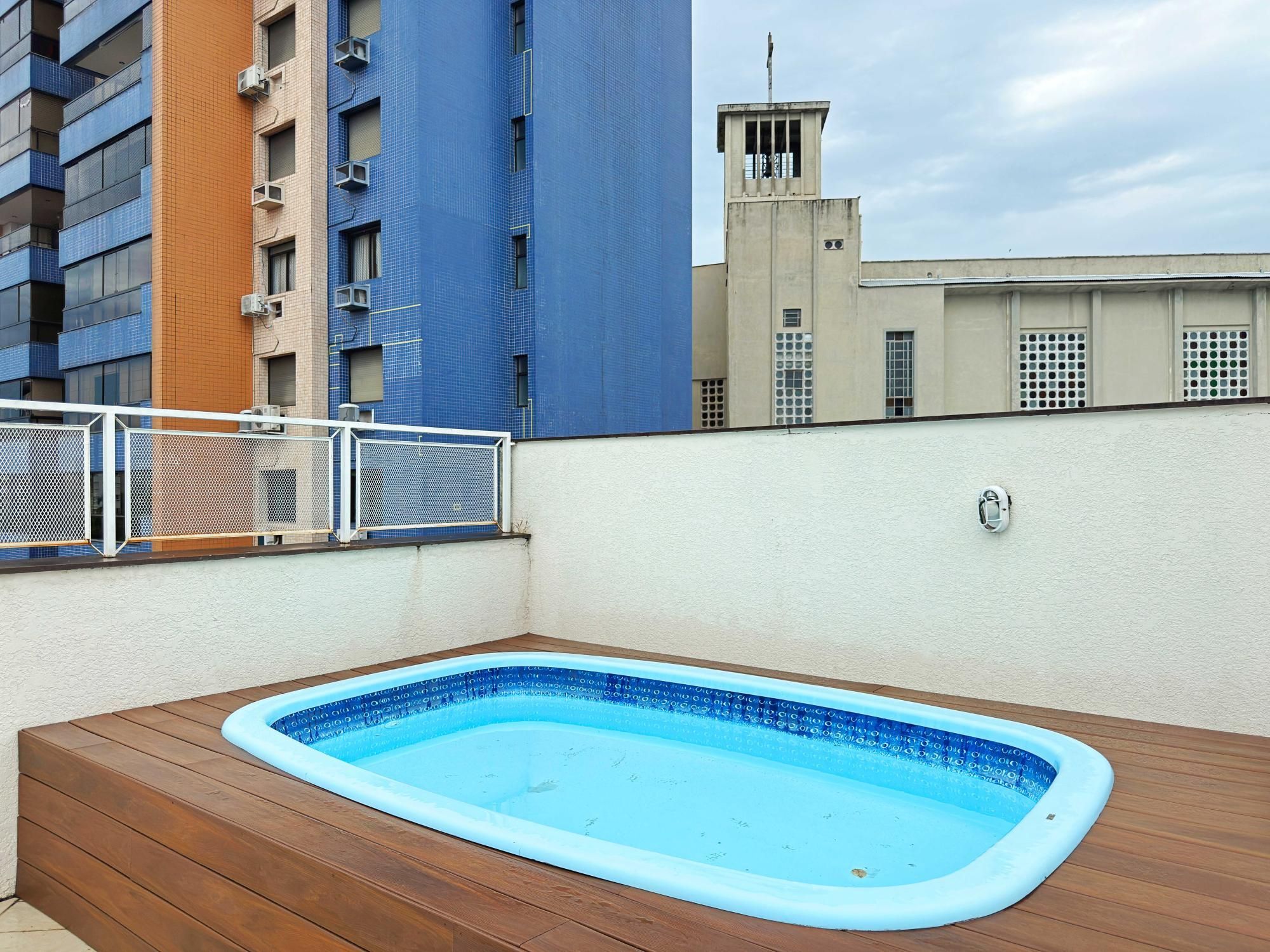 Edifício com elevador e área de lazer com terraço na cobertura: salão de festas churrasqueira e piscina.