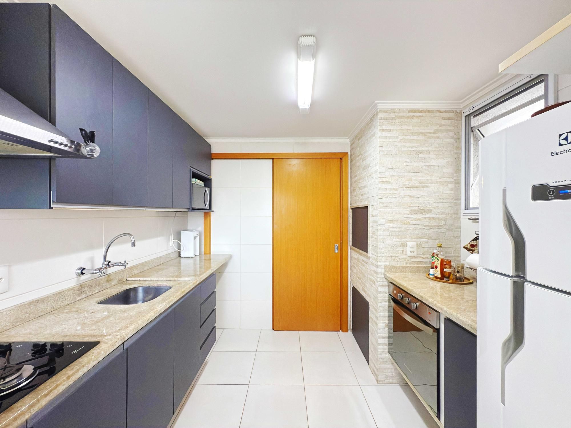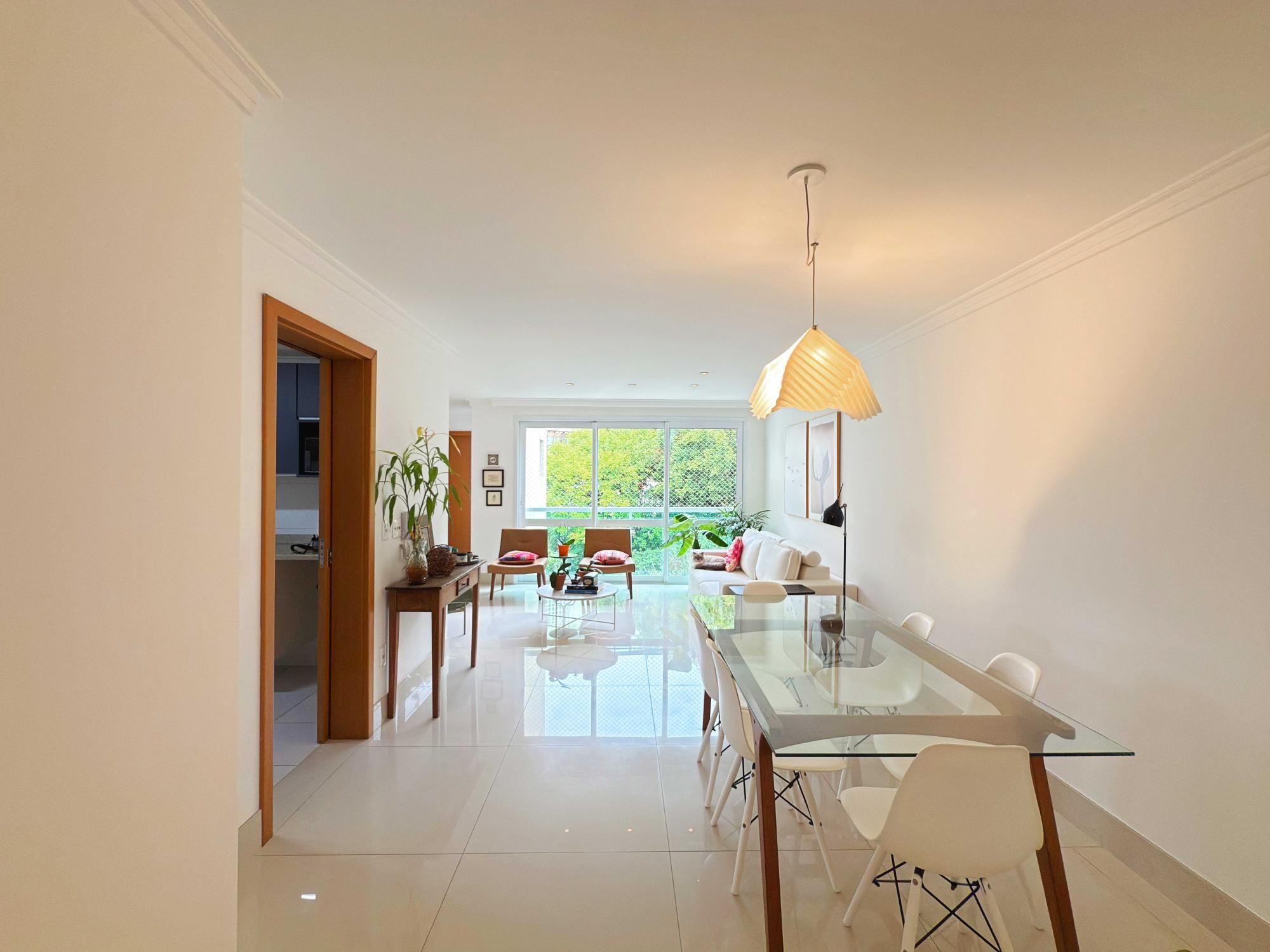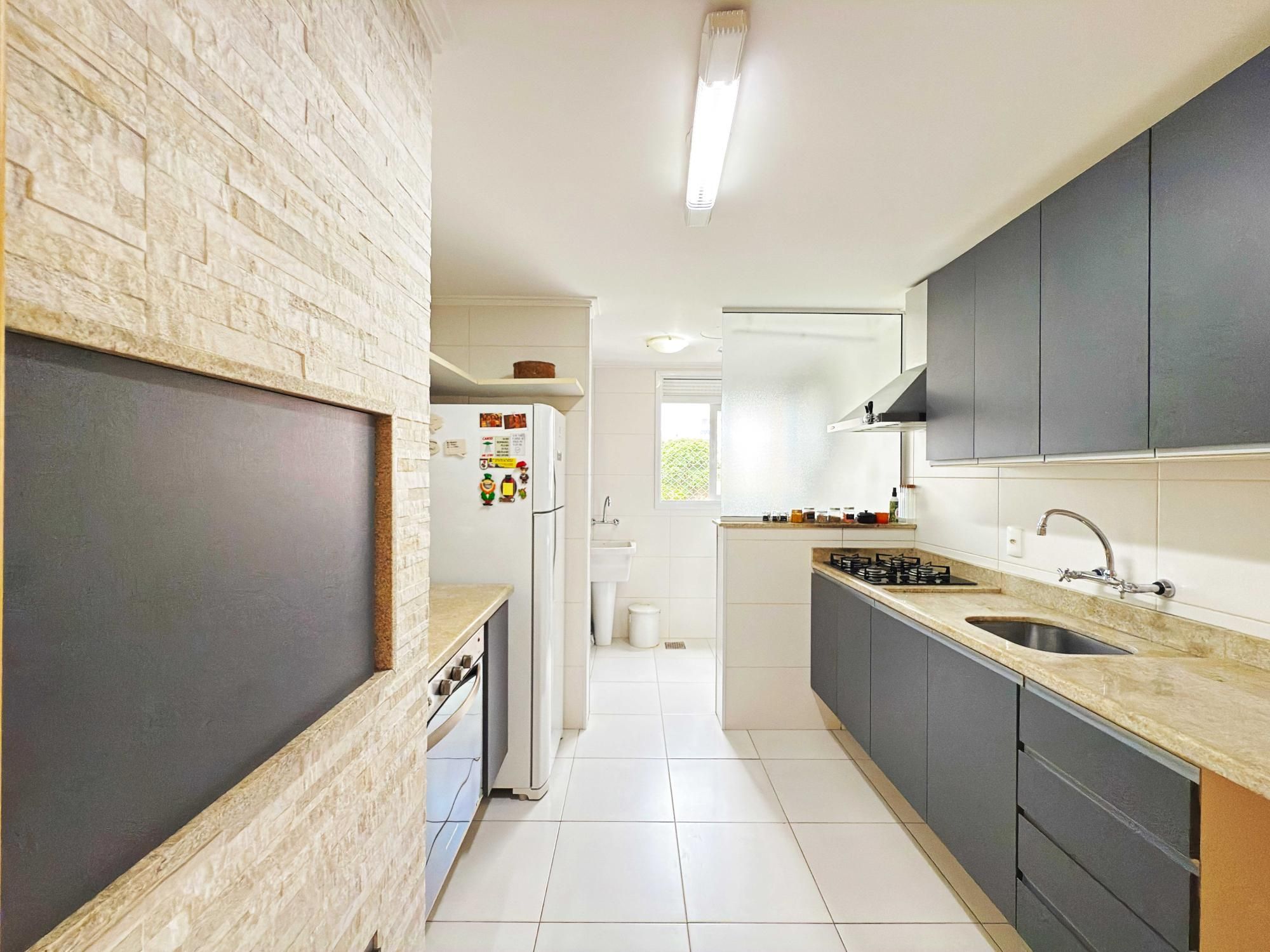 Excelente apartamento com 95 m² de área privativa, piso em porcelanato, lavabo, living com estar e jantar, cozinha, churrasqueira com duto individual e área de serviço separada. Vaga de garagem coberta e escriturada.
