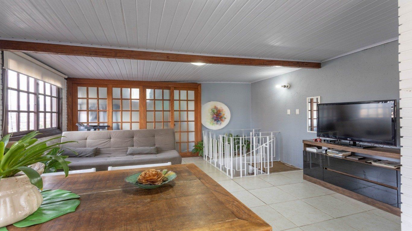 O imóvel conta com 3 dormitórios, sendo 1 suíte, além de banheiro social e 2 lavabos. A área social é ampla e bem distribuída, proporcionando ambientes aconchegantes para convivência e recepção. Possui churrasqueira, lareira e acesso a um espaço externo com piscina, perfeito para momentos de lazer e relaxamento.