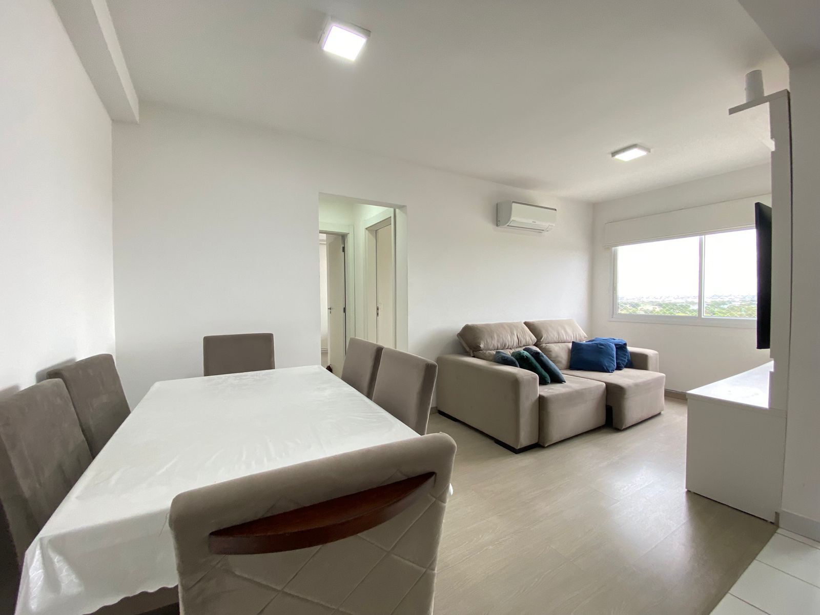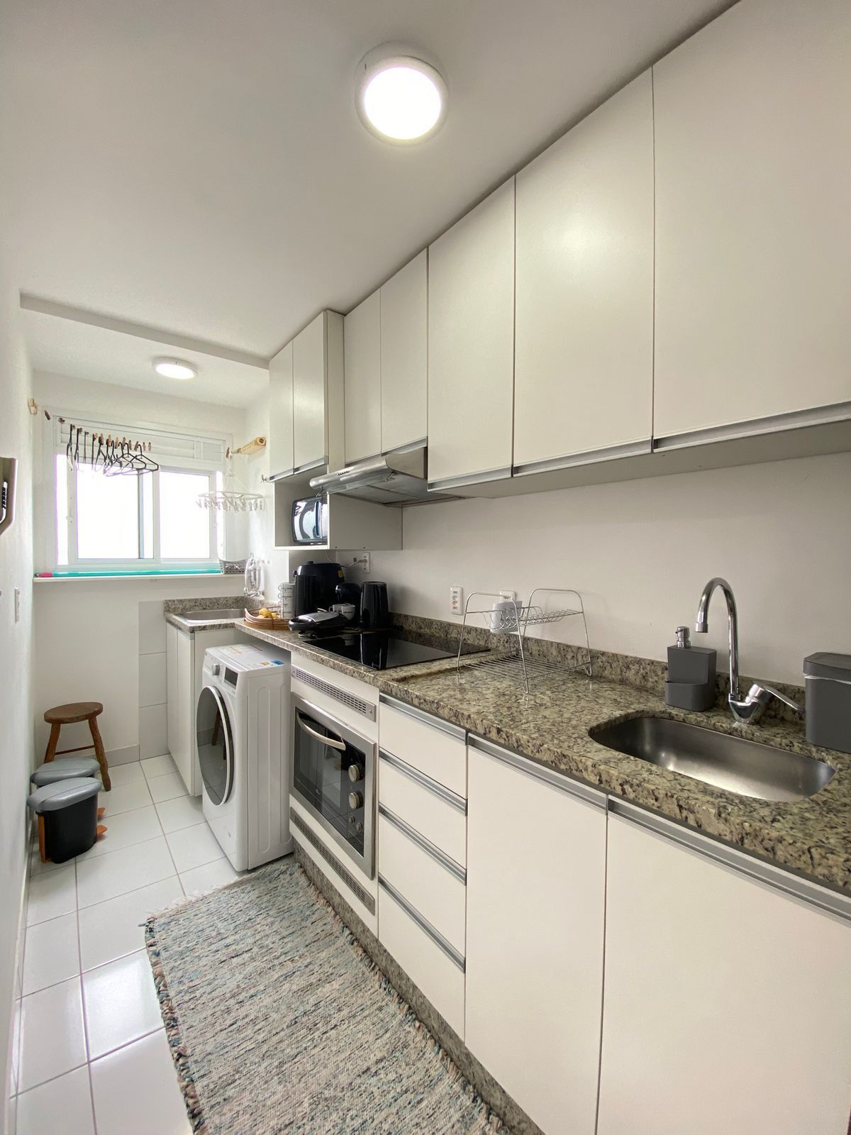 O imóvel conta com 2 dormitórios, banheiro completo, living aconchegante, cozinha funcional e 1 vaga de garagem escriturada. O apartamento é semi-mobiliado, permanecendo armários da cozinha e do banheiro, o que facilita a mudança e reduz investimentos iniciais.