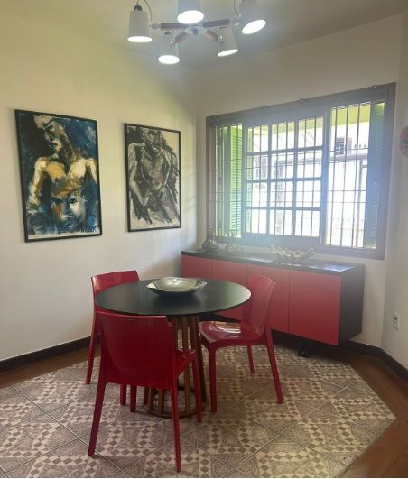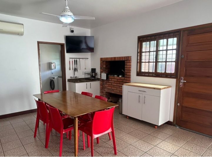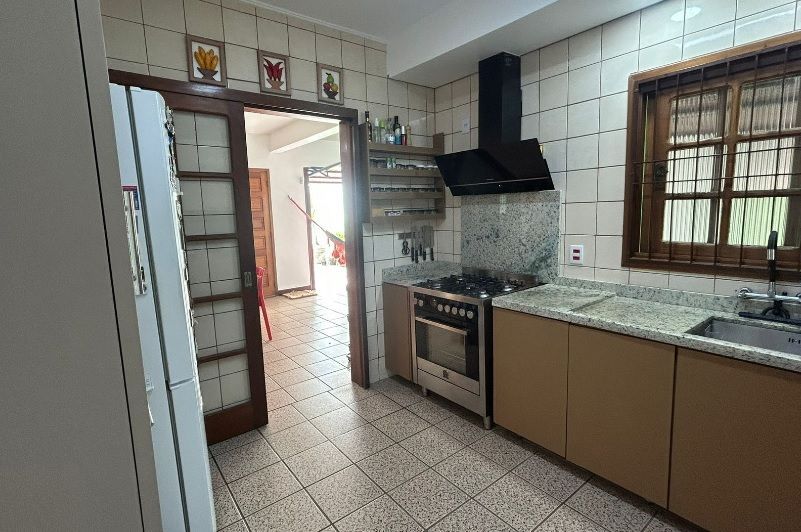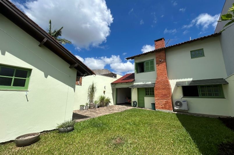 Excelente casa de 224 m2, com boa distribuição interna, conta com 3 dormitórios, sendo 1 suíte com closet e banheiro com hidromassagem, 03 banheiros, living 2 ambientes, cozinha planejada, sala de estar; sala de TV, espaço Gourmet com churrasqueira, lavanderia, amplo pátio nos fundos, com gramado e espaço para colocar uma bela piscina. Imóvel em perfeito estado de conservação, com aberturas em madeira, piso frio nas áreas sociais e revestimento de madeira, taboão nos dormitórios. Aquecimento de água por por aquecedor de passagem no banheiro social e torneiras. Espaço para até 5 veículos entre vagas cobertas e descobertas.
