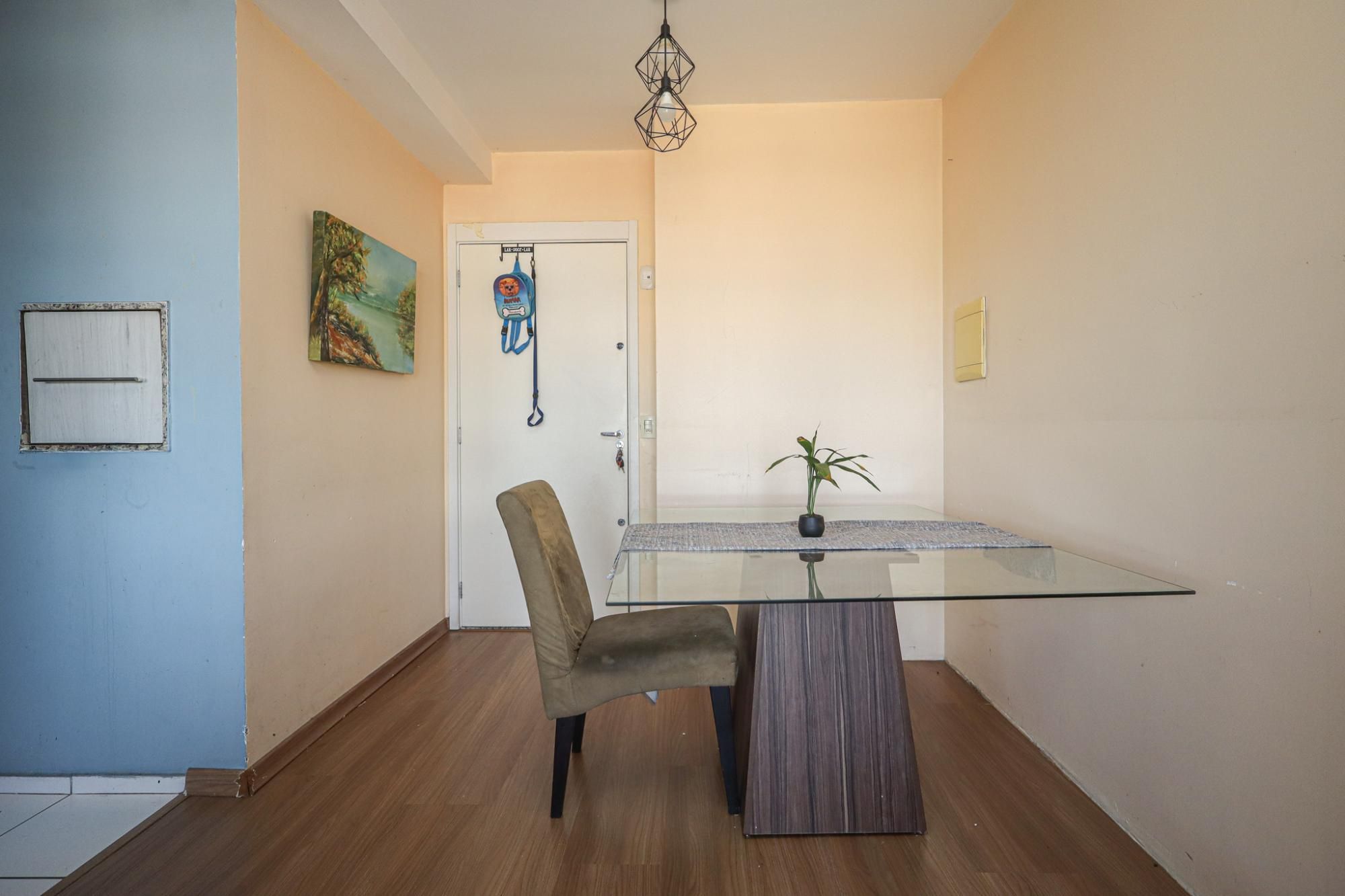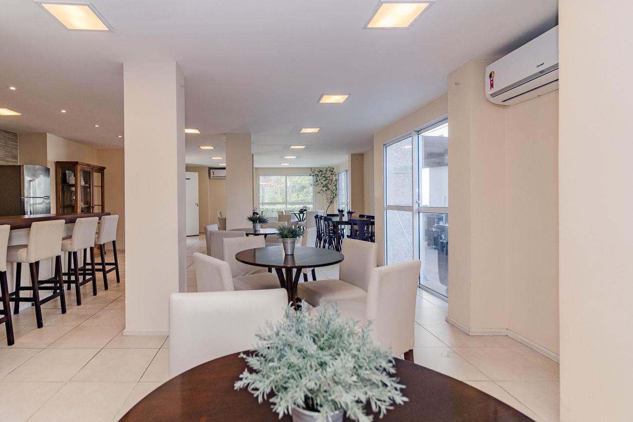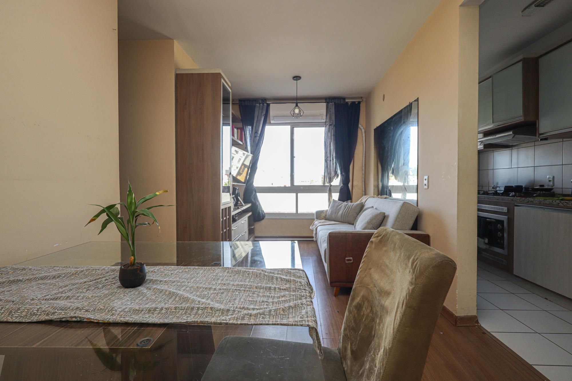 Apartamento semimobiliado com 57 m² de área privativas com 2 dormitórios sendo 1 suíte, banheiro social, living para 2 ambientes, cozinha americana montada com churrasqueira e área de serviço. Possui 1 vaga de garagem escriturada.