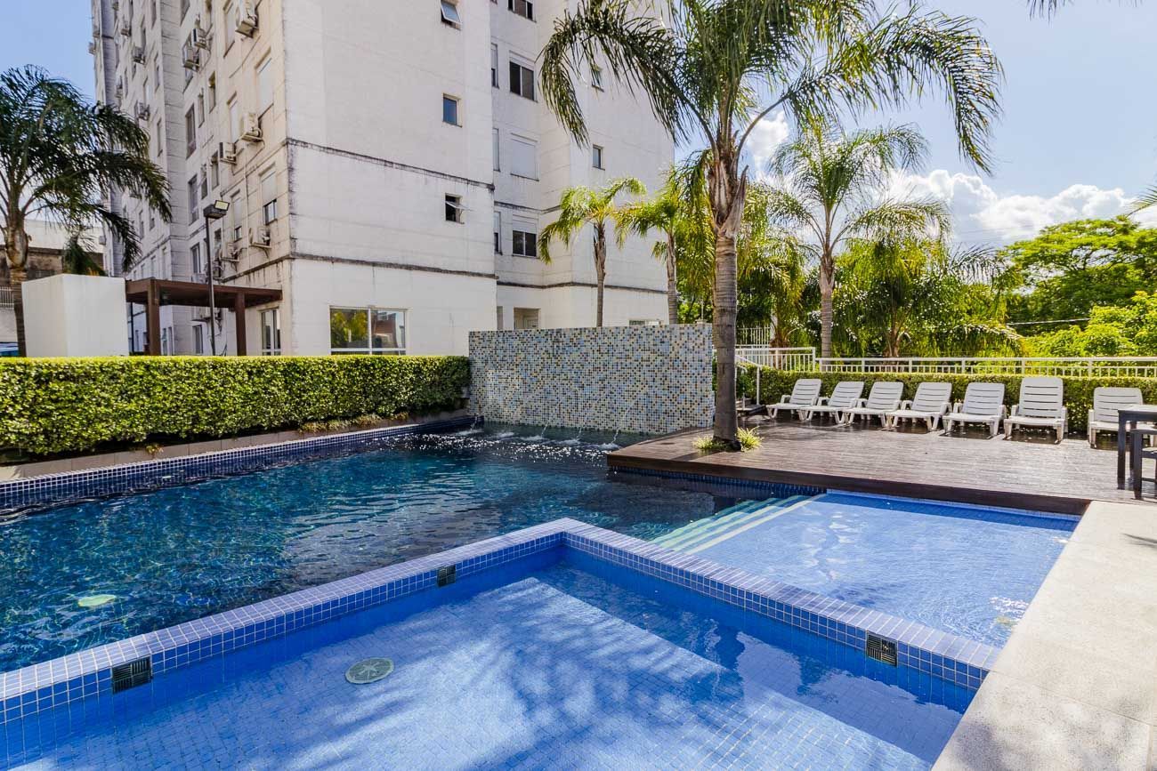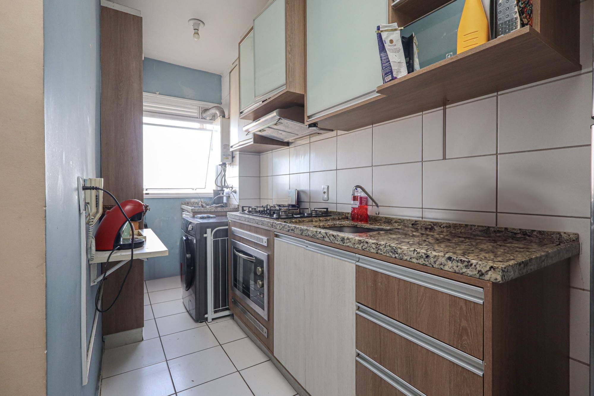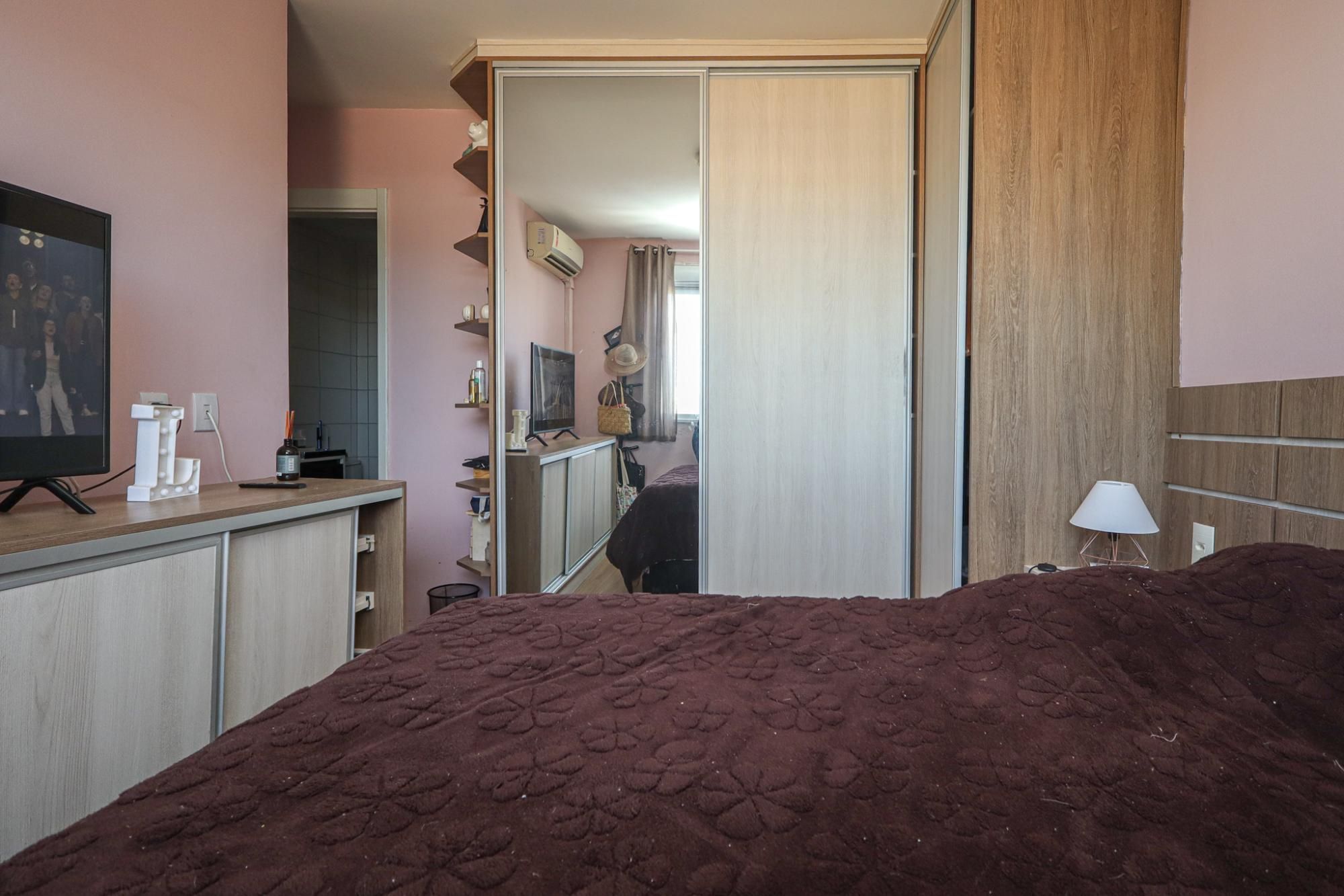 Apartamento semimobiliado com 57 m² de área privativas com 2 dormitórios sendo 1 suíte, banheiro social, living para 2 ambientes, cozinha americana montada com churrasqueira e área de serviço. Possui 1 vaga de garagem escriturada.