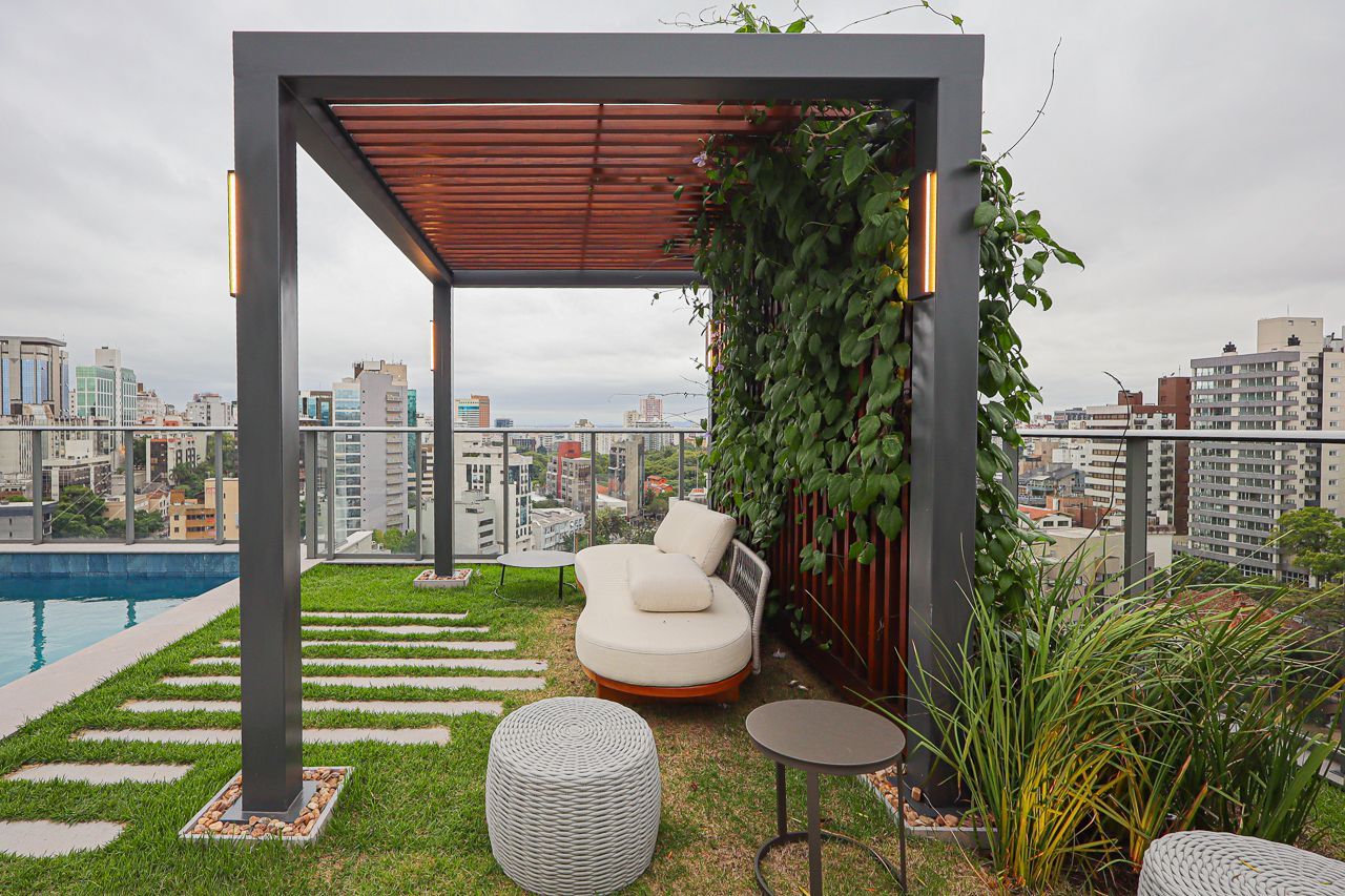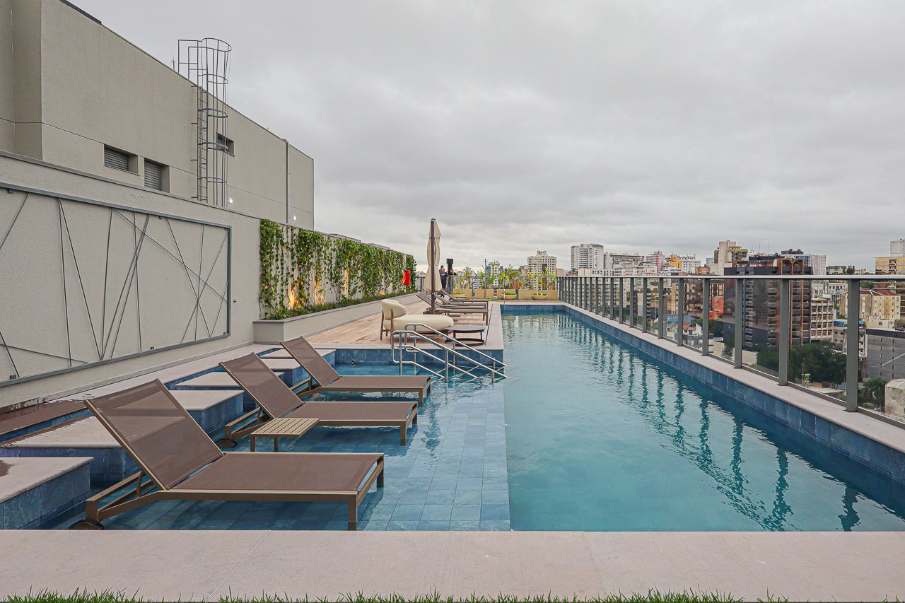 O condomínio oferece infraestrutura completa: rooftop com vista panorâmica, piscina, academia equipada, elevador, espaço de coworking, espaço gourmet com churrasqueira, salão de festas e portaria virtual, garantindo segurança e comodidade no dia a dia.