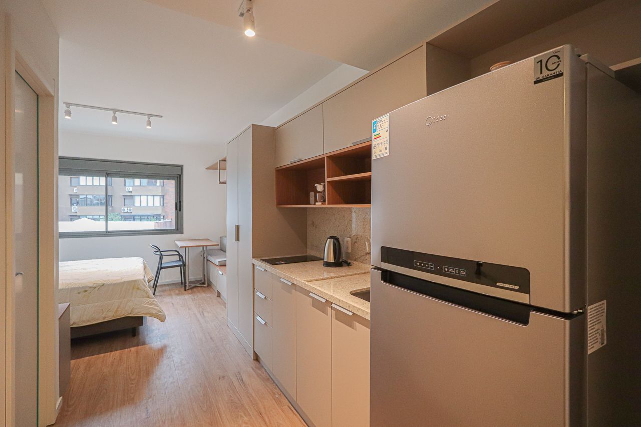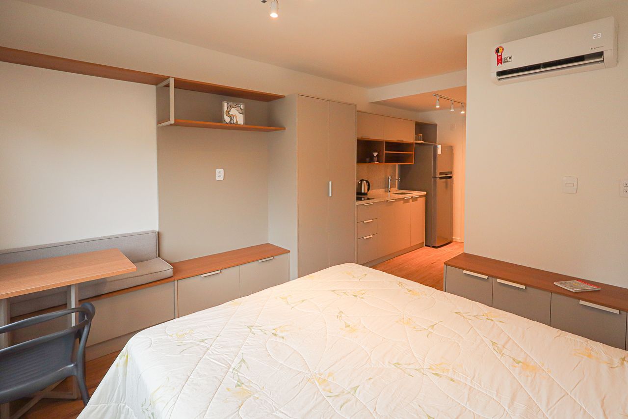 Studio recém entregue pela construtora Cyrela, já reformado e pronto para morar, com 25 m² de área privativa. O imóvel conta com 1 dormitório integrado, banheiro social e cozinha totalmente montada. Será vendido porteira fechada, incluindo todos os móveis planejados, eletrodomésticos e itens de decoração, ideal para quem busca praticidade, conforto e um investimento pronto para uso. Possui vaga de garagem rotativa.
