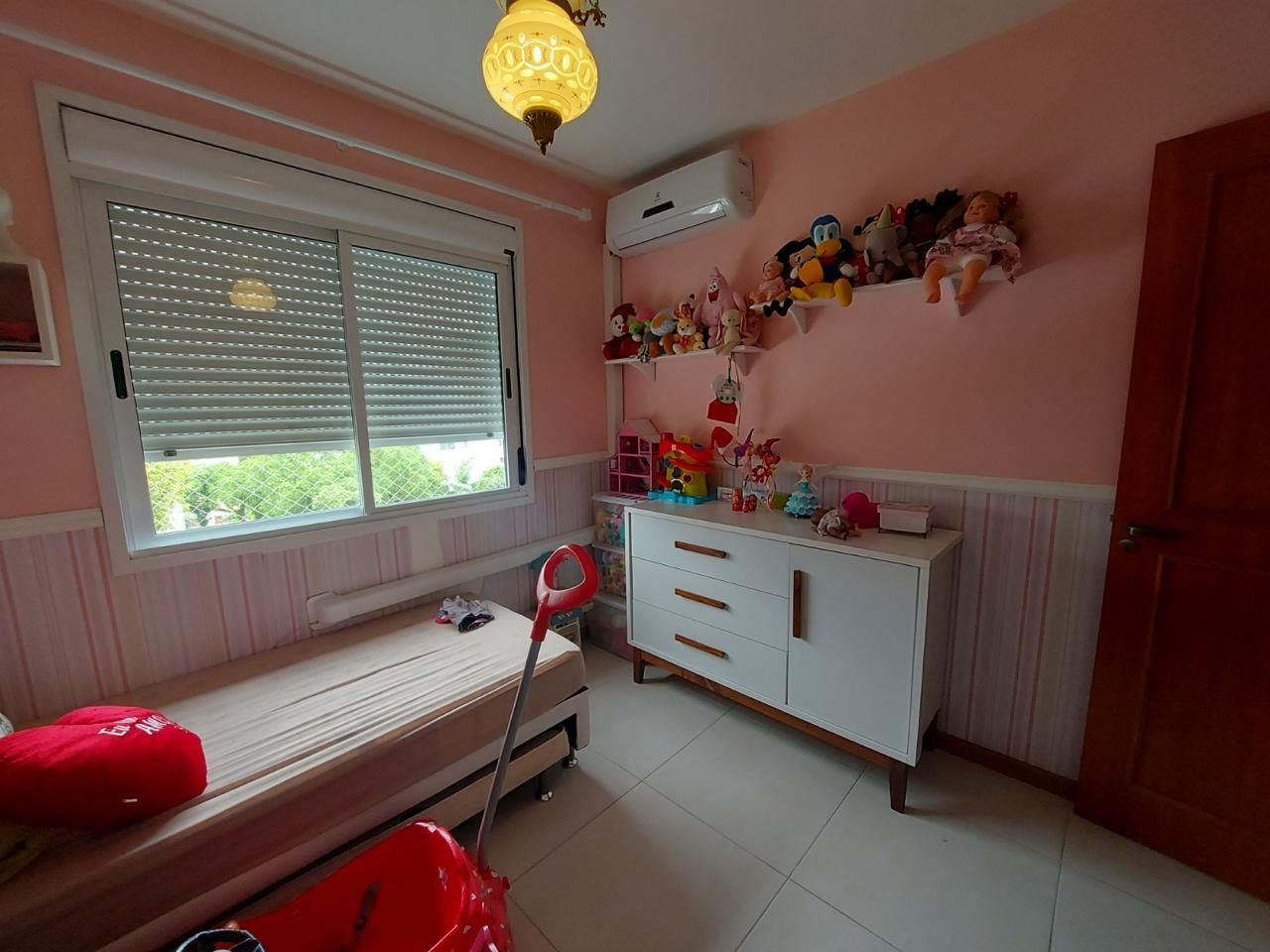 O imóvel possui living para dois ambientes, com teto rebaixado em gesso e iluminação em LED, proporcionando um ambiente organizado e funcional. A cozinha em estilo americano conta com móveis sob medida e churrasqueira integrada, favorecendo melhor aproveitamento dos espaços. Dispõe ainda de área de serviço separada e banheiro social, permanecendo os splits e os móveis fixos, o que facilita a mudança e reduz investimento inicial.