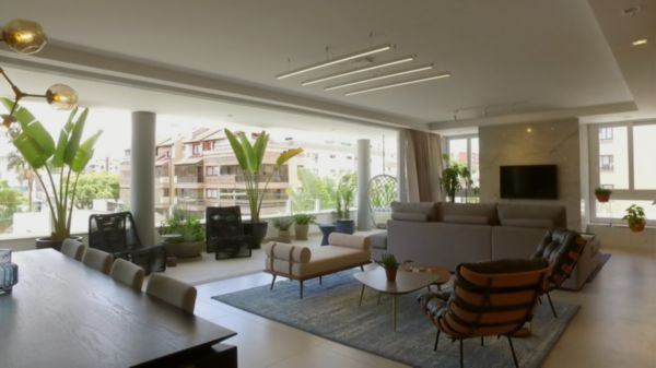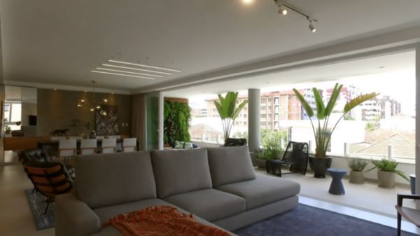 Cobertura com mezanino, alto padrão no Menino Deus; 3 suítes, 177,07 m² de área privativa; com design moderno e contemporâneo. Andar inferior: hall de entrada, lavabo, living para três ambientes, cozinha e lavanderia separadas, sacada que acompanha o apartamento; Andar superior: suítes, sendo uma master; 1 vaga dupla e uma simples com disponibilidade de compra de uma terceira simples ou dupla. Com excelente localização próximo à todos os recursos do bairro.