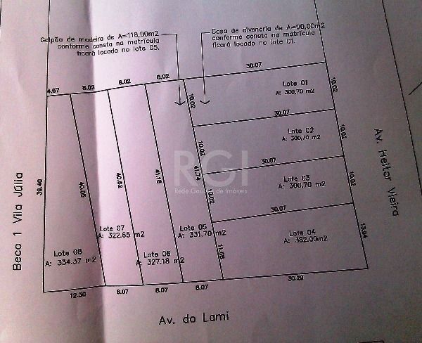 Terreno plano, frente para a Av. do Lami com 8 x41m totalizando de 331,70.