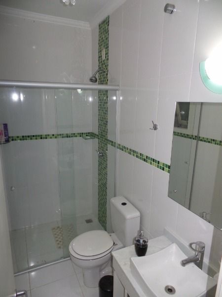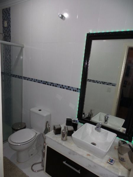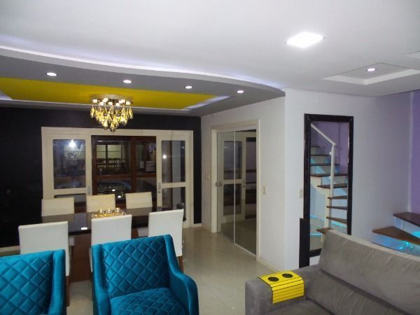 BELO sobrado 03 dormitórios, sendo uma suíte com closet e sacada, estar íntimo com banheiro social, todos os dormitórios com sacada, living 2 ambientes com lareira, churrasqueira, piscina e garagem para 2 carros; e mais um salão de festas nos fundos com entrada independente, vaga para 4 carros, telão, churrasqueira, bancada americana, lavabo, possibilidade de construir no segundo pavimento. Confira!