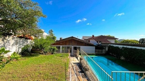Ótima residência 4 dormitórios, suíte c/hidro e closet, living 2 ambientes c/lareia (em tabuão), lavabo, gabinete, estar íntimo, sala de jantar, copa/cozinha montada, dependência de empregada, despensa, garagem para 5 carros, água quente, salão de festas, churrasqueira, pátio c/piscina. Com vista p/o rio.
