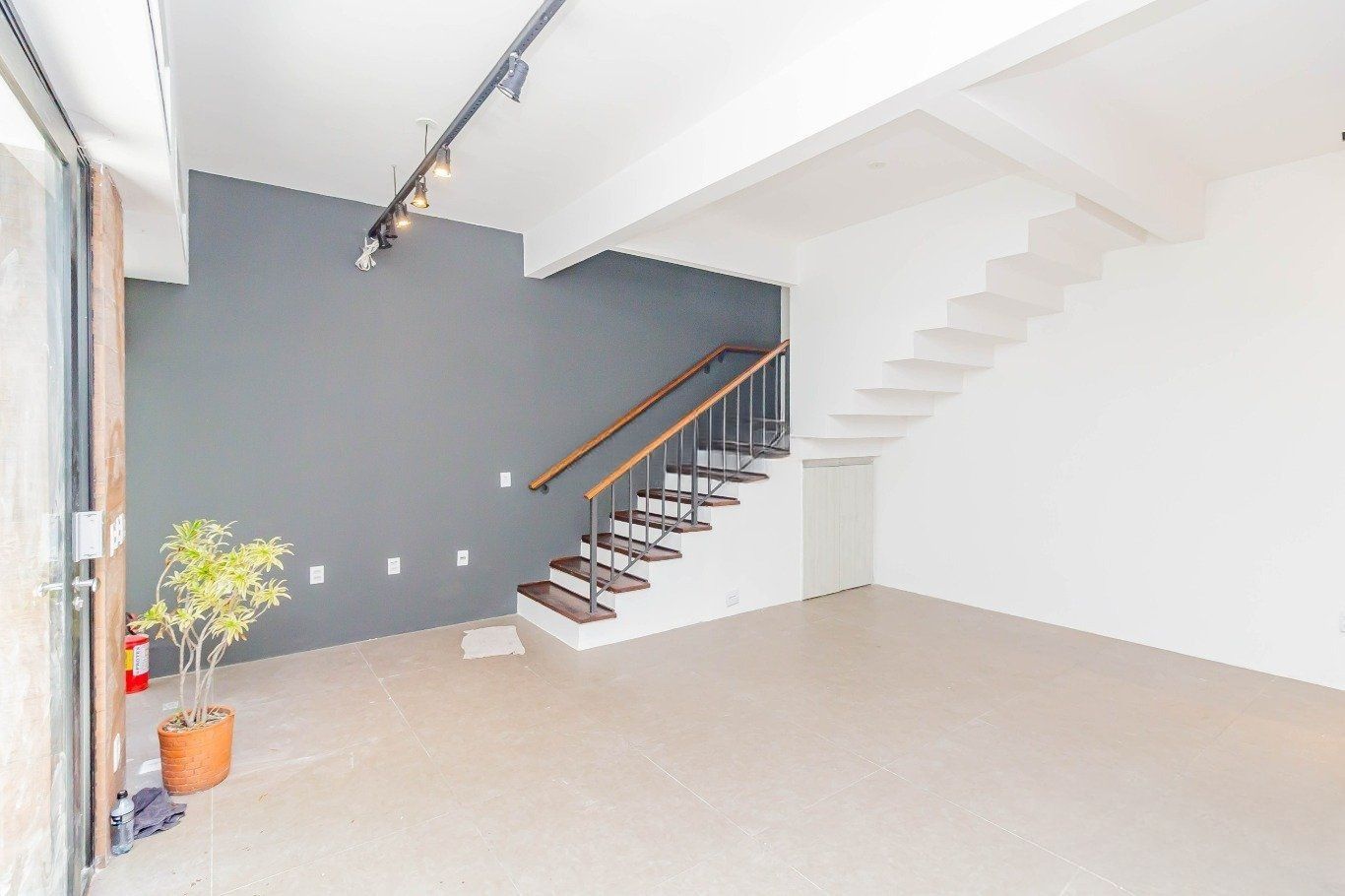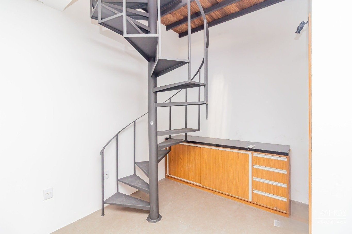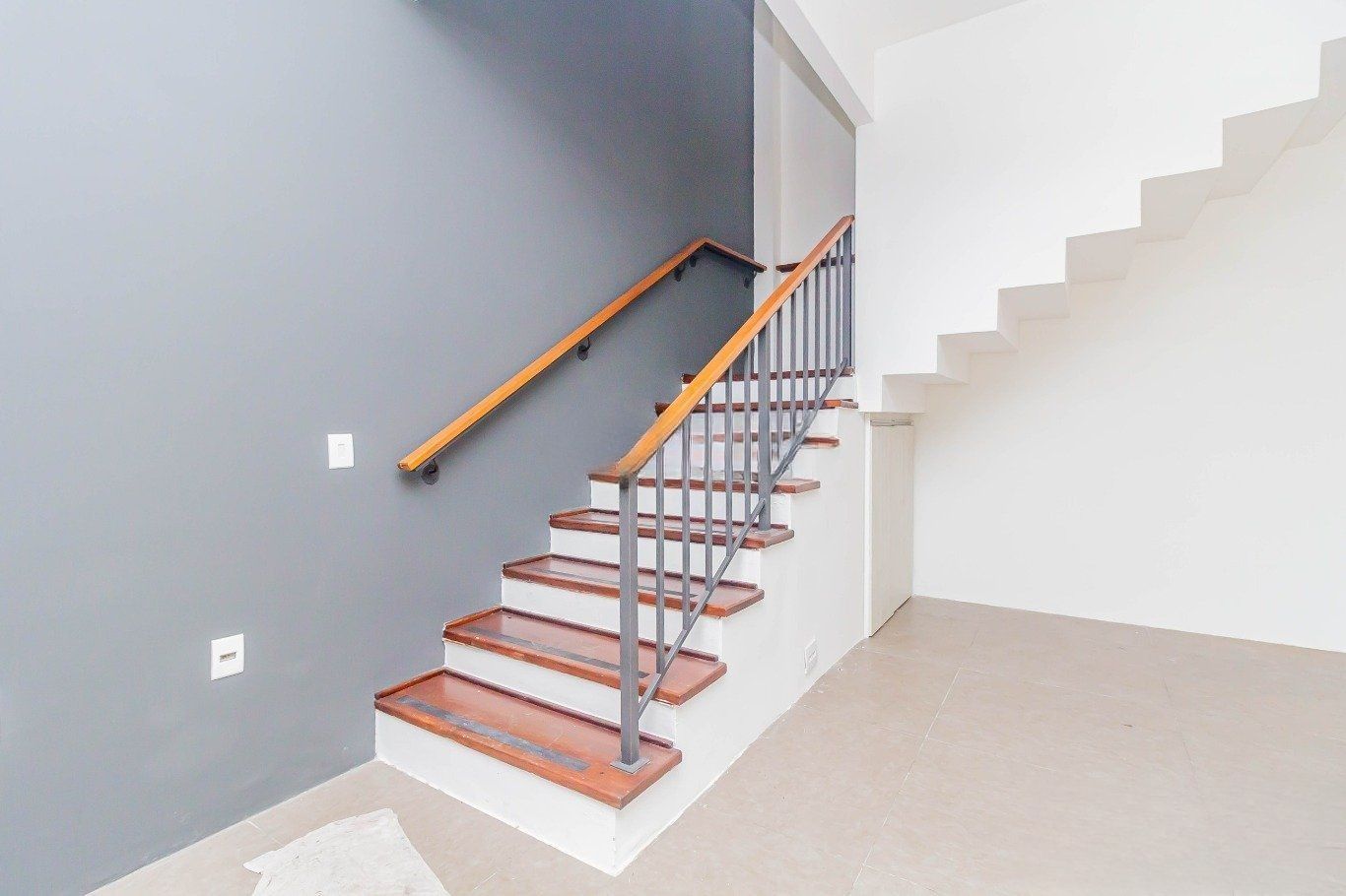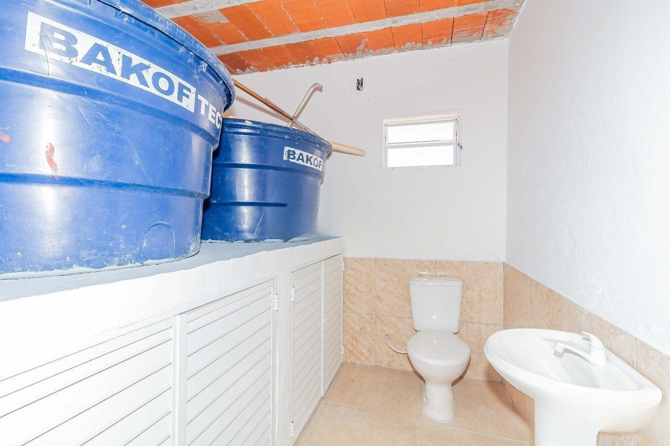 No segundo pavimento, há uma sala com armários planejados e ar-condicionado, além de espaço reservado para a instalação de mais um banheiro. O pavimento já dispõe de um banheiro completo, com armário sob a pia, box, chuveiro e janela com abertura para o exterior, garantindo ventilação natural.
