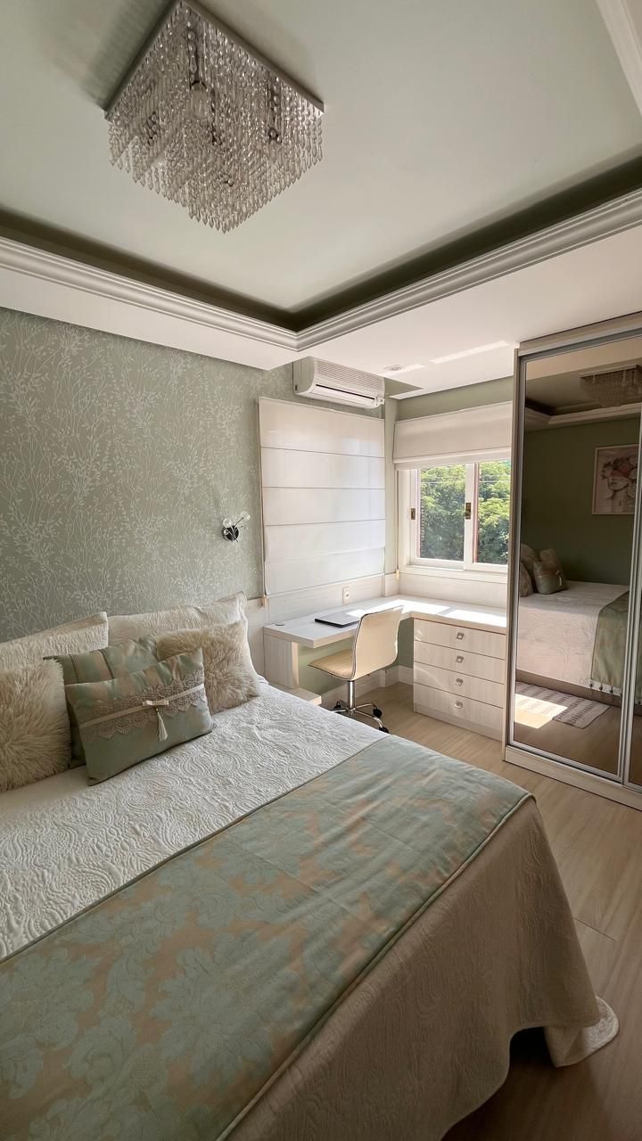 Ótimo e amplo apartamento no bairro Santana, próximo da Av. Ipiranga, de frente, com 80m² privativos, mobiliado, de 2 dormitórios e vaga. Possui sala ampla para 2 ambientes com rebaixe em gesso e sacada integrada com churrasqueira, 2 dormitórios sendo 1 suíte, banheiro social, cozinha mobiliada, e área de serviço separada por divisória de vidro. Ambos banheiros com box de vidro e ventilação natural. Ficam no imóvel todos os móveis planejados fixos, cortinas sob medida, lustres, 3 Splits instalados, home na sala, lareira a gás, espelhos, geladeira, forno, cooktop, Junker e varal sob medida. Teto em gesso e iluminação embutida em todos os ambientes. Vista aberta e panorâmica da rua: janelas amplas com persianas double vision, proporcionando vista livre para a rua e privacidade. Possui uma vaga de garagem coberta e escriturada, com possibilidade de locação de 2º box por baixo custo. Condomínio com portaria virtual 24h, hall de entrada, elevador, bicicletário, gás central, dois terraços de uso comum com vista panorâmica, sistema de monitoramento por câmeras com acesso remoto via APP. Localizado em ótima região próximo do Zaffari da Ipiranga, a poucos minutos da UFRGS, da PUC, do Hospital Ernesto Dorneles, do Instituto de Cardiologia, e fácil acesso ao Centro. Documentação ok para financiamento. Agende já uma visita.