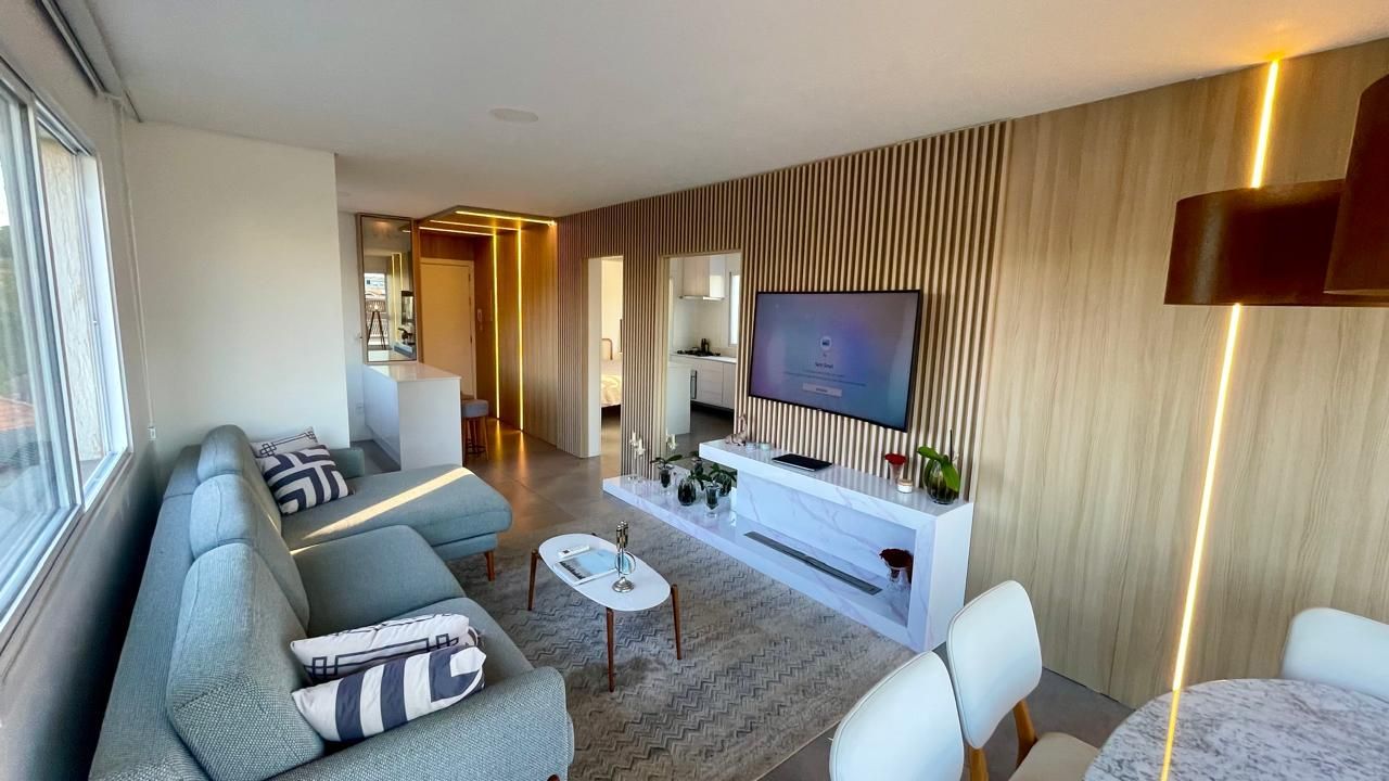 O living é espaçoso e confortável. A cozinha conta com móveis fixos de alta qualidade e eletrodomésticos novos e modernos, oferecendo praticidade no dia a dia. A área de serviço é separada, garantindo mais organização.
