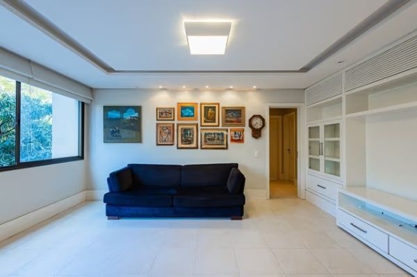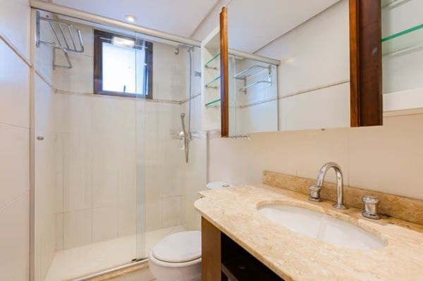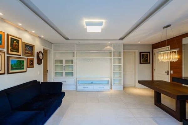 Apartamento semimobiliado com 3 quartos, sendo 1 suíte, distribuídos em 96m² privativos. O imóvel conta com living amplo para três ambientes bem definidos, churrasqueira integrada, cozinha montada e banheiro social, oferecendo conforto e praticidade no dia a dia.