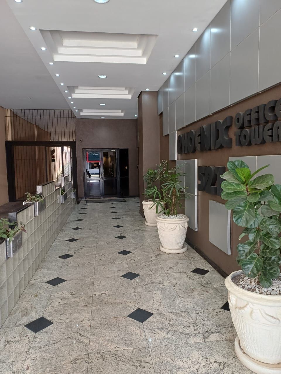 Prédio comercial com portaria e elevador e estacionamento rotativo aberto ao público.