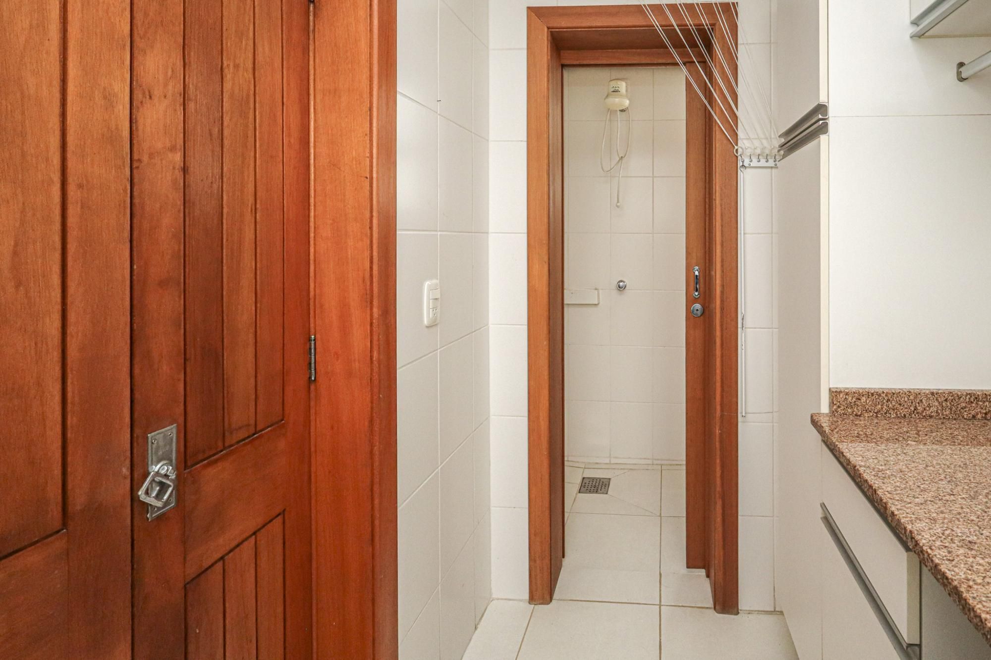 Apartamento semimobiliado com 84 m² de área privativa com 2 dormitórios, banheiro social com ventilação natural, living amplo para 3 ambientes com espaço gourmet e churrasqueira, ótima iluminação, cozinha montada com área de serviço individual e banheiro auxiliar. Possui 1 vaga de garagem coberta a escriturada.