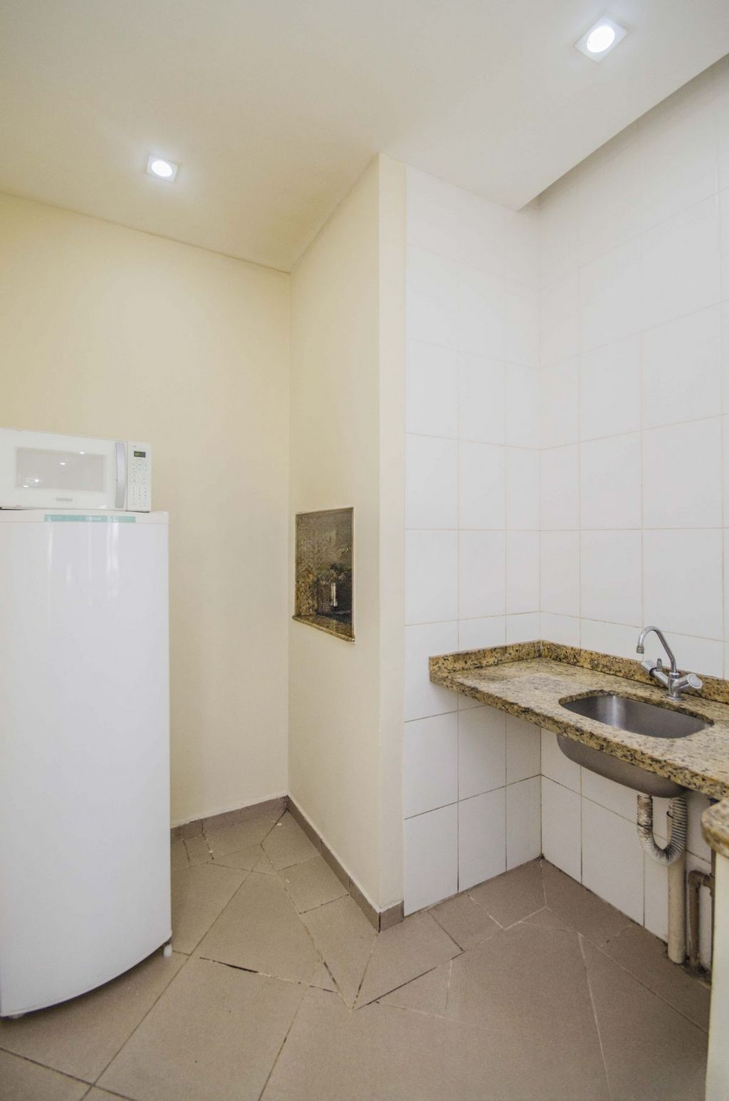 Área de serviço integrada à cozinha, ventilada e iluminada.