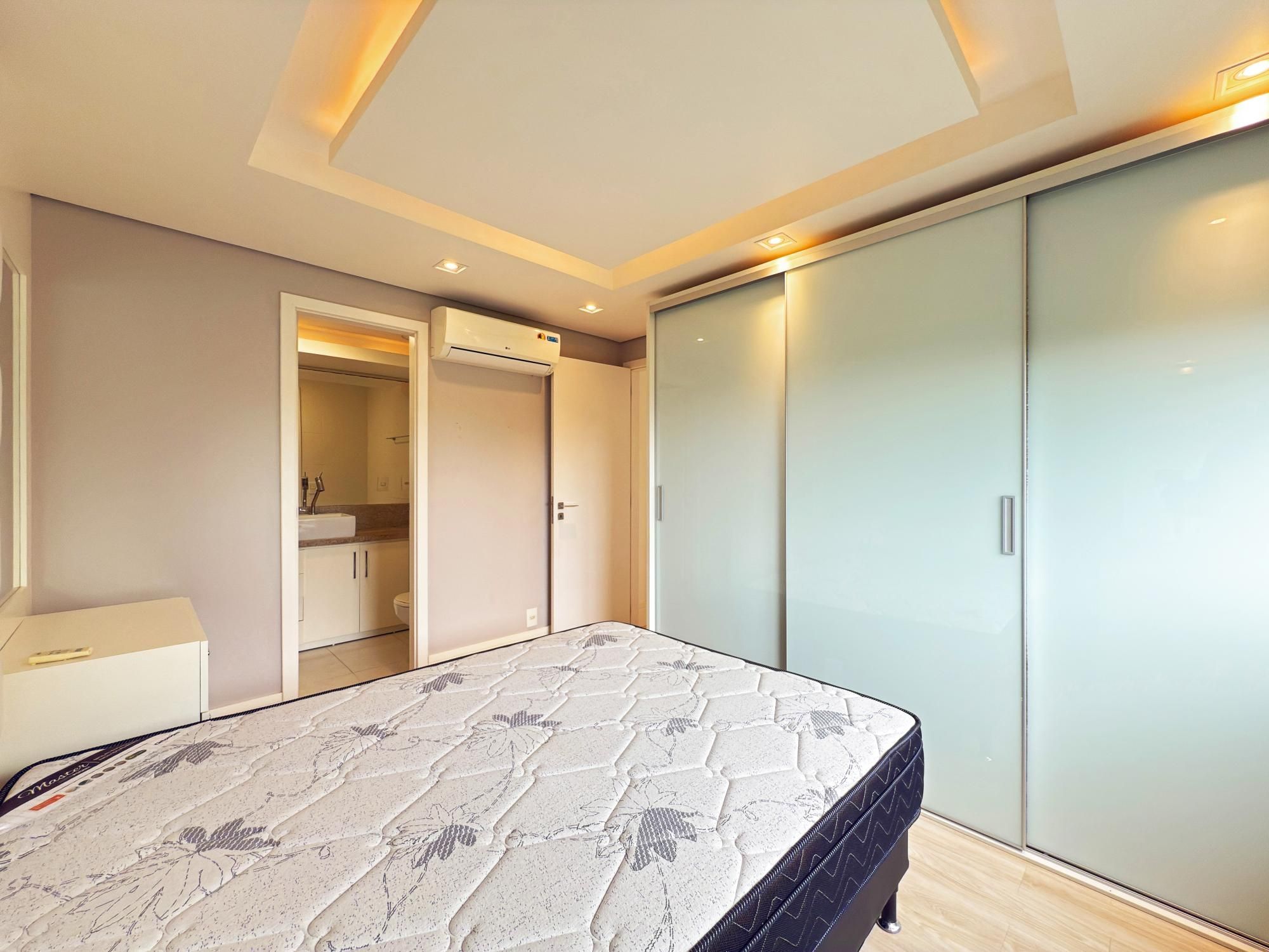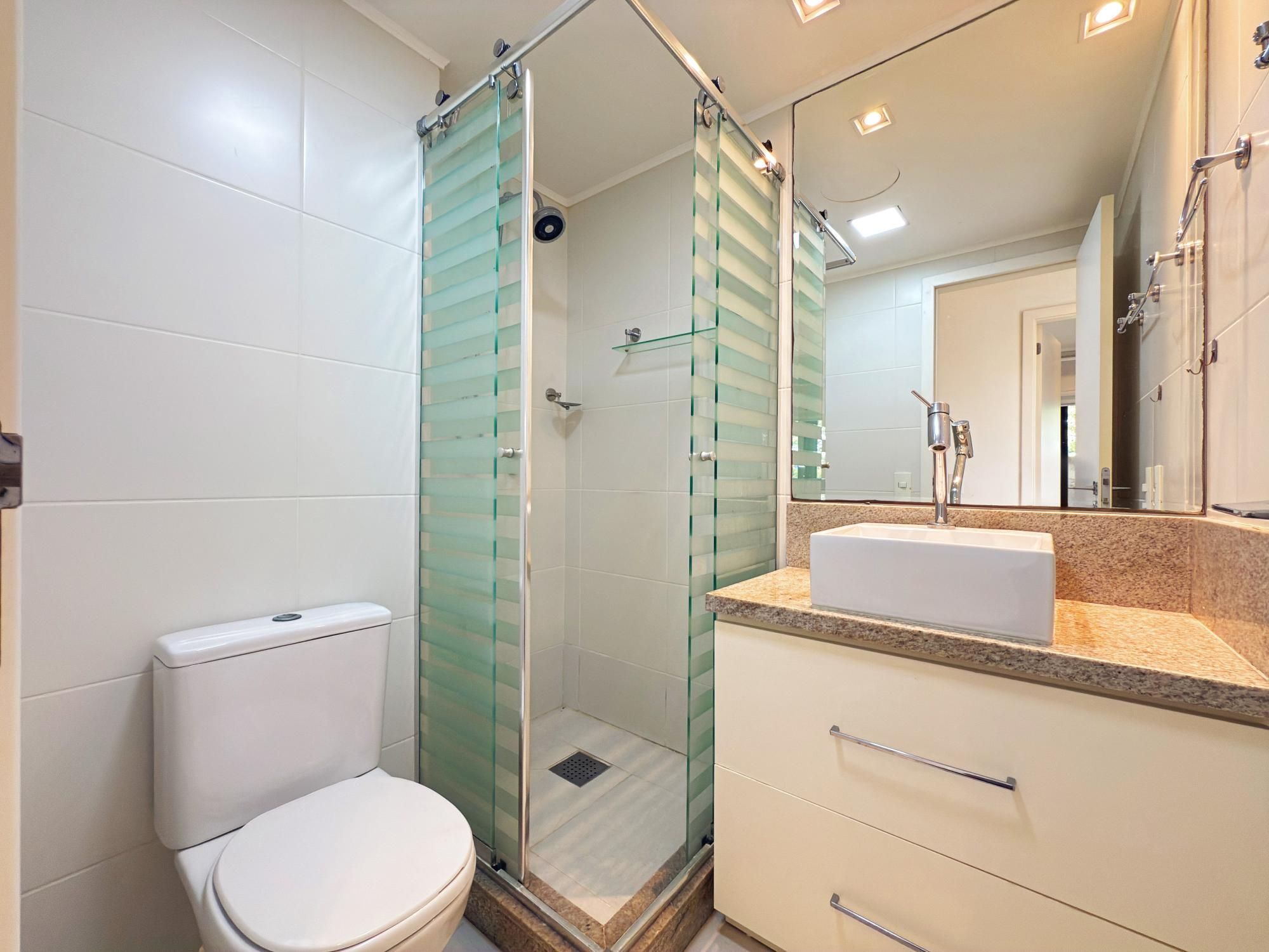 Além disso, o condomínio conta com gerador de energia, elevador, interfone, jardim, solarium, bar, forno de pizza, piscina coberta, piscina infantil, piscina aquecida, gás central e vestiário, proporcionando uma experiência completa e confortável para os moradores.