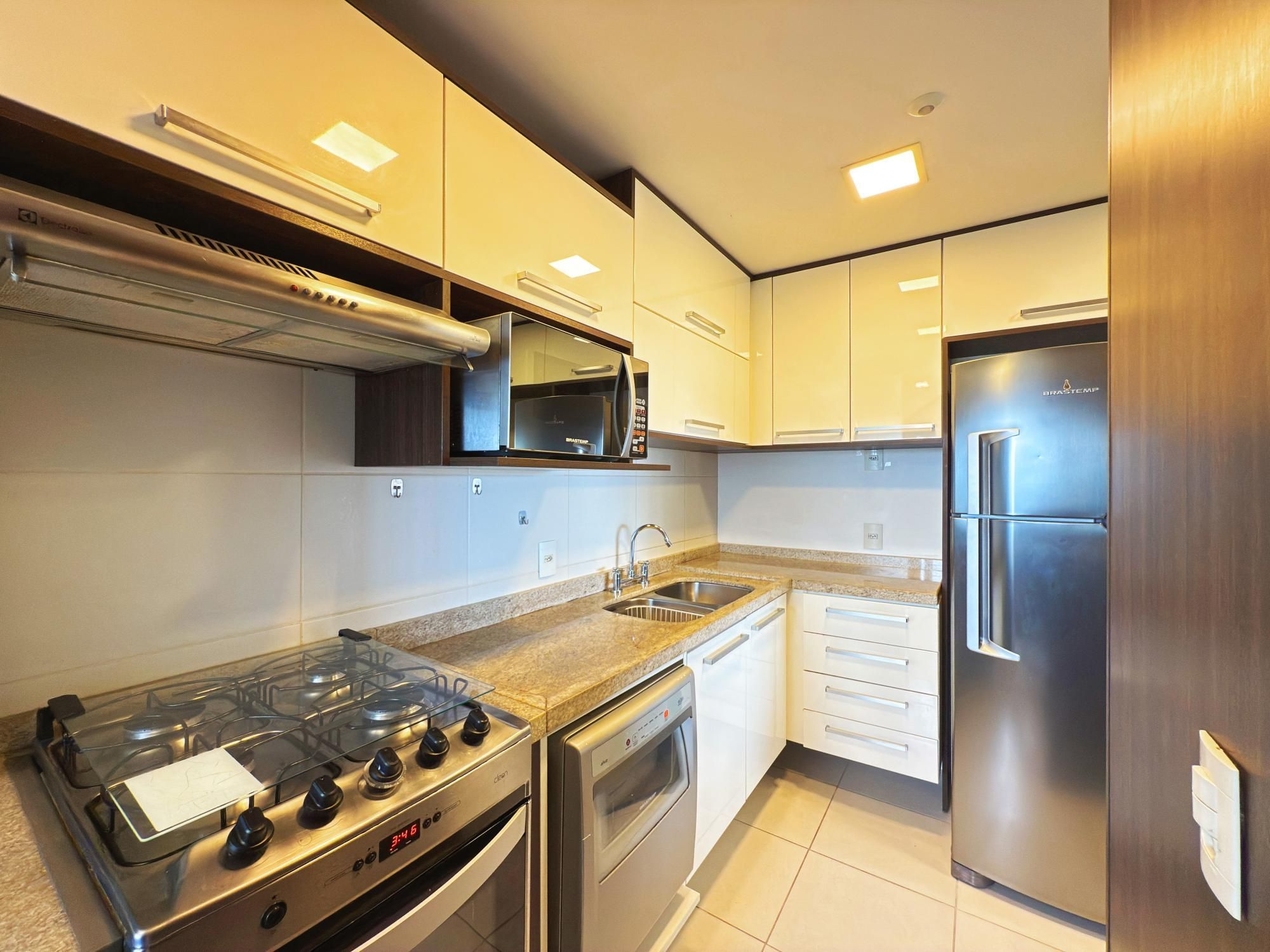 - Cozinha americana com armários planejados, proporcionando praticidade e organização