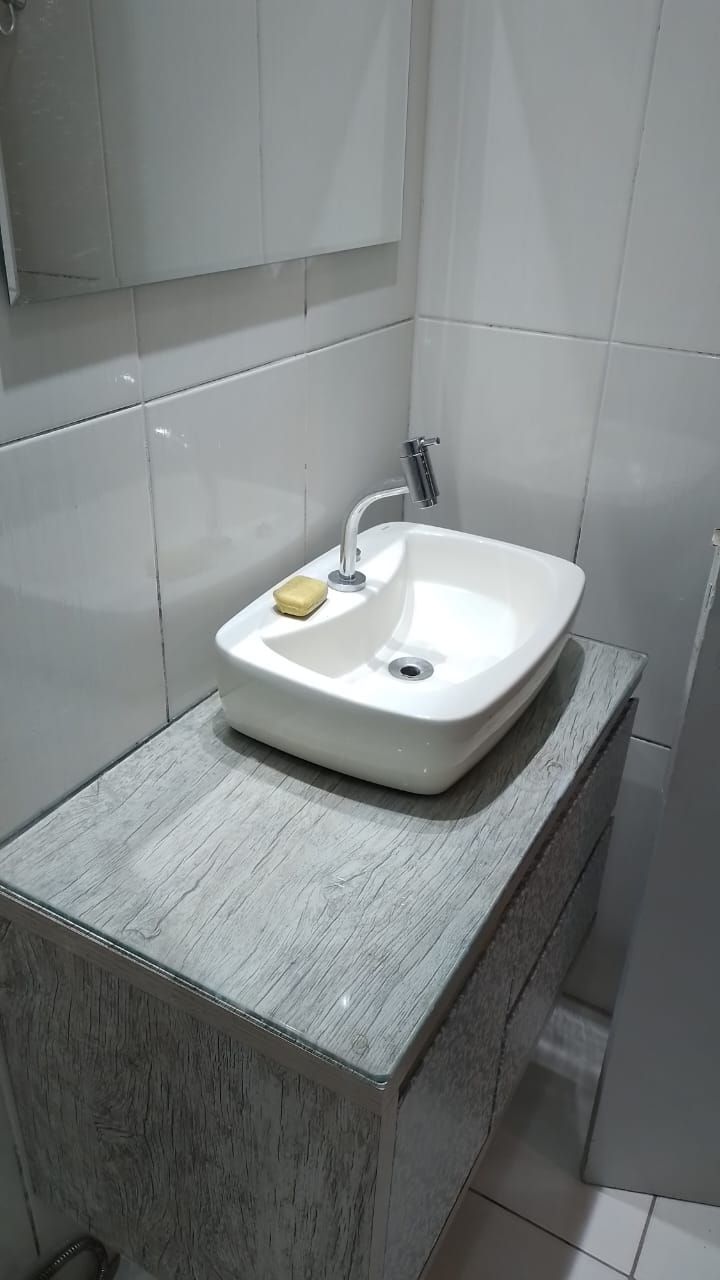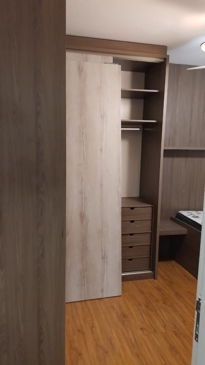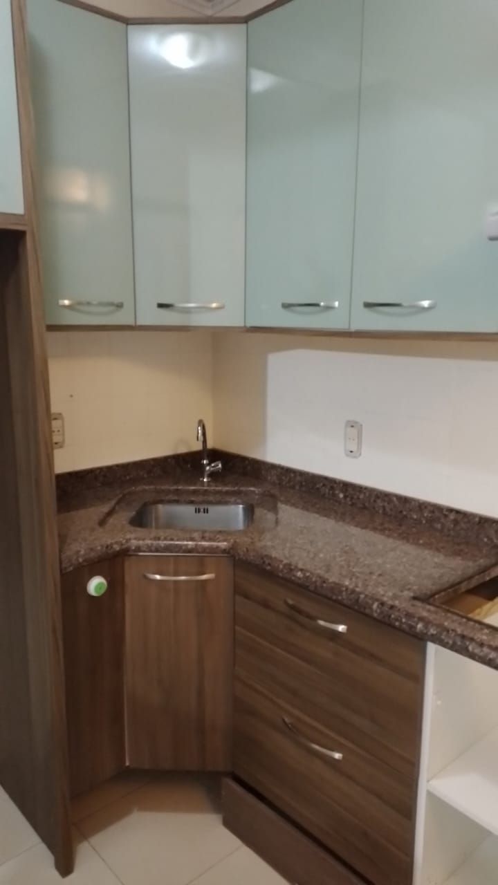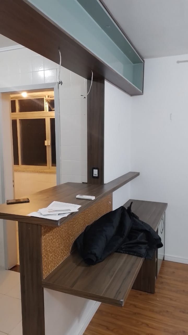 Suíte ampla com móveis sob medida e banheiro confortável. Sala bem iluminada, com janelas amplas, ar-condicionado split e marcenaria planejada. Cozinha equipada com móveis sob medida, bancada em granito, cooktop e geladeira. Área de serviço discreta, com tanque e armário. Apenas um lance de escada.