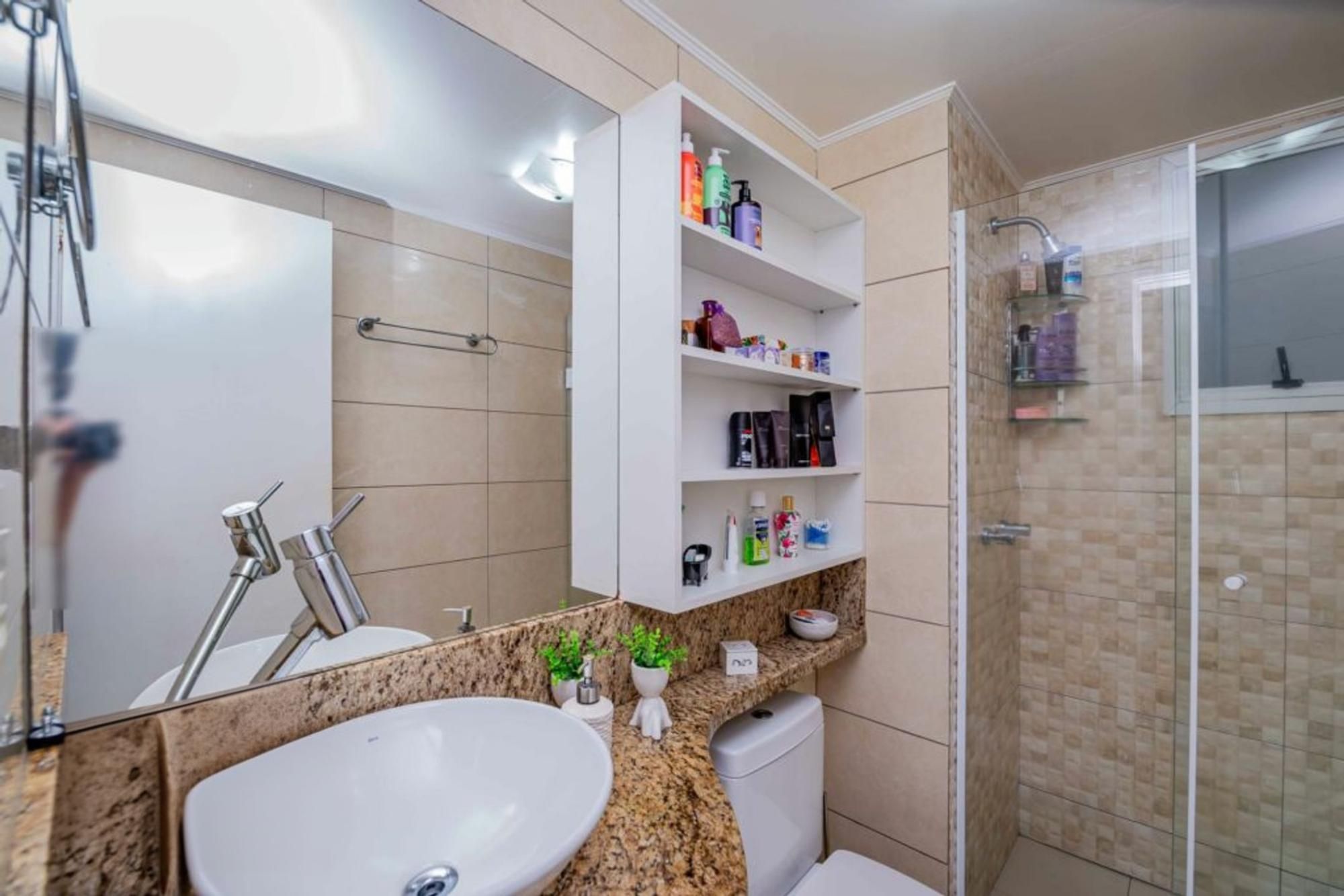 Condomínio com portaria 24 horas, elevador, salão de festas, mini mercado, pracinha, quadra poliesportiva, fitness ao ar livre e quiosques com churrasqueira.