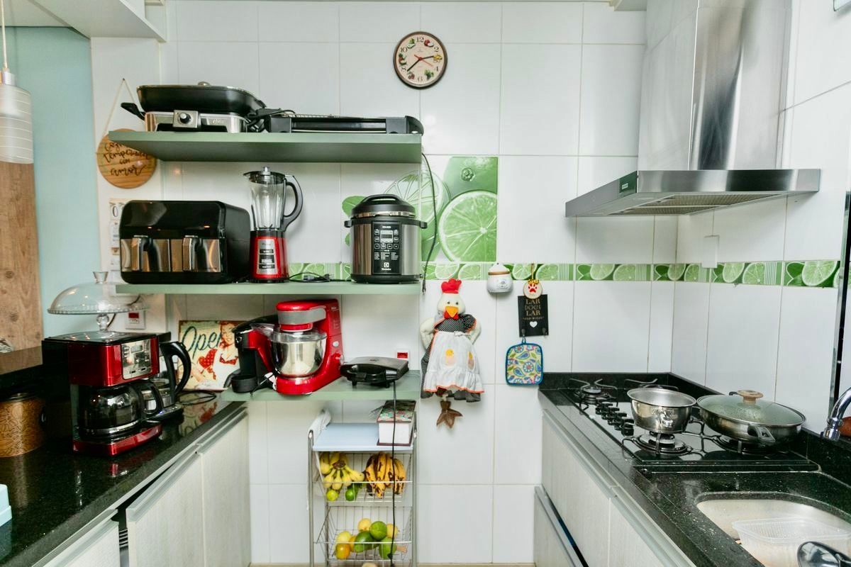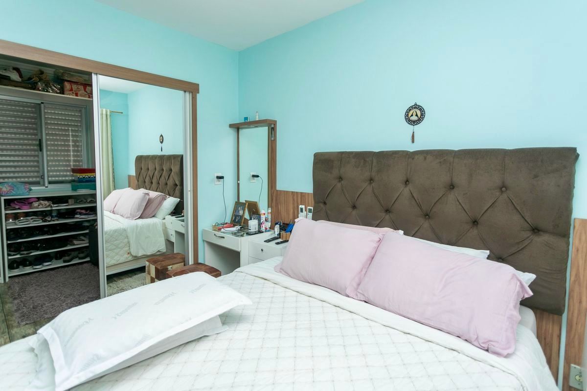 O condomínio proporciona segurança e lazer, contando com portaria 24 horas, piscina adulto e infantil, salão de festas, churrasqueira, playground e quadra esportiva.