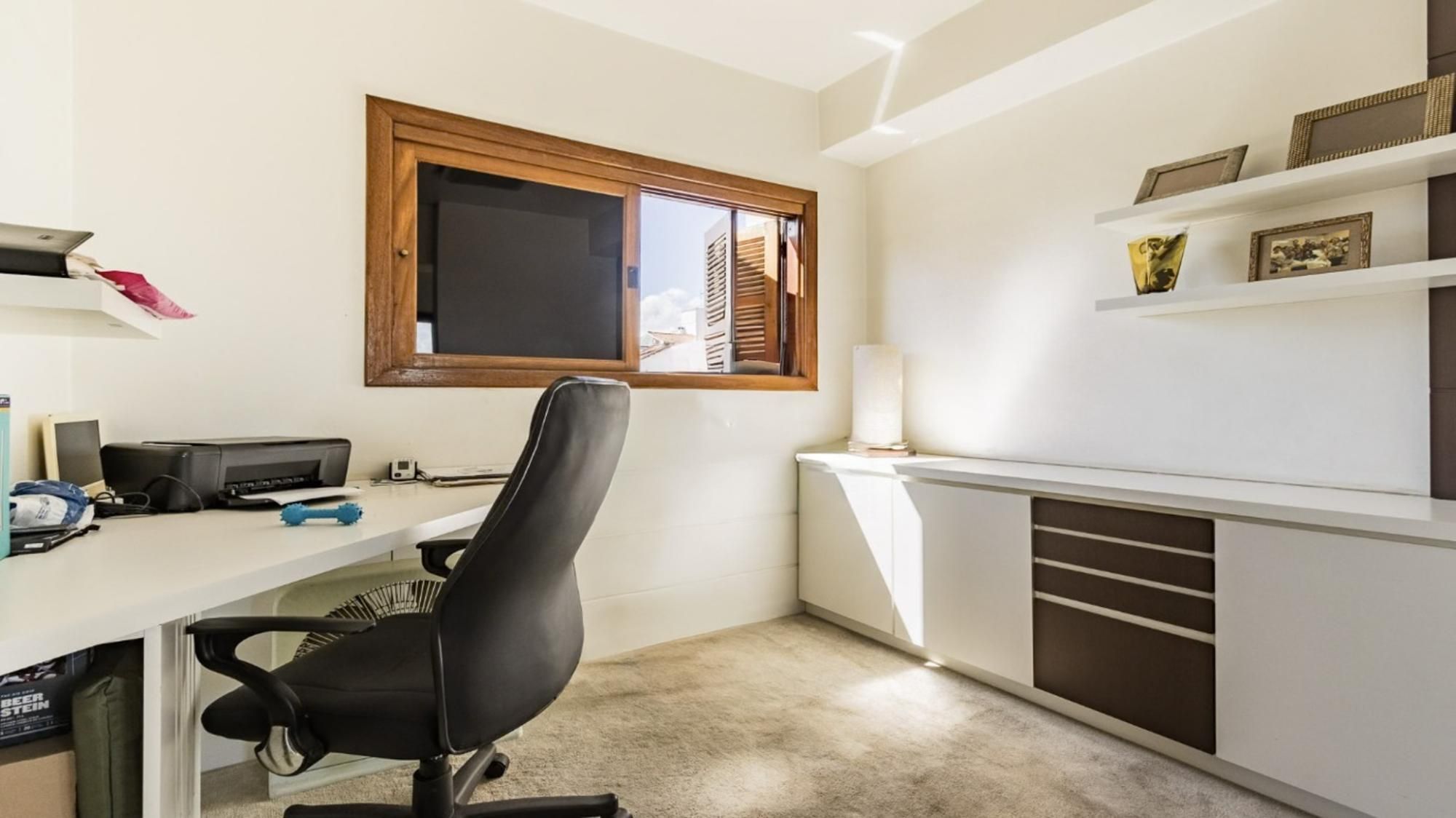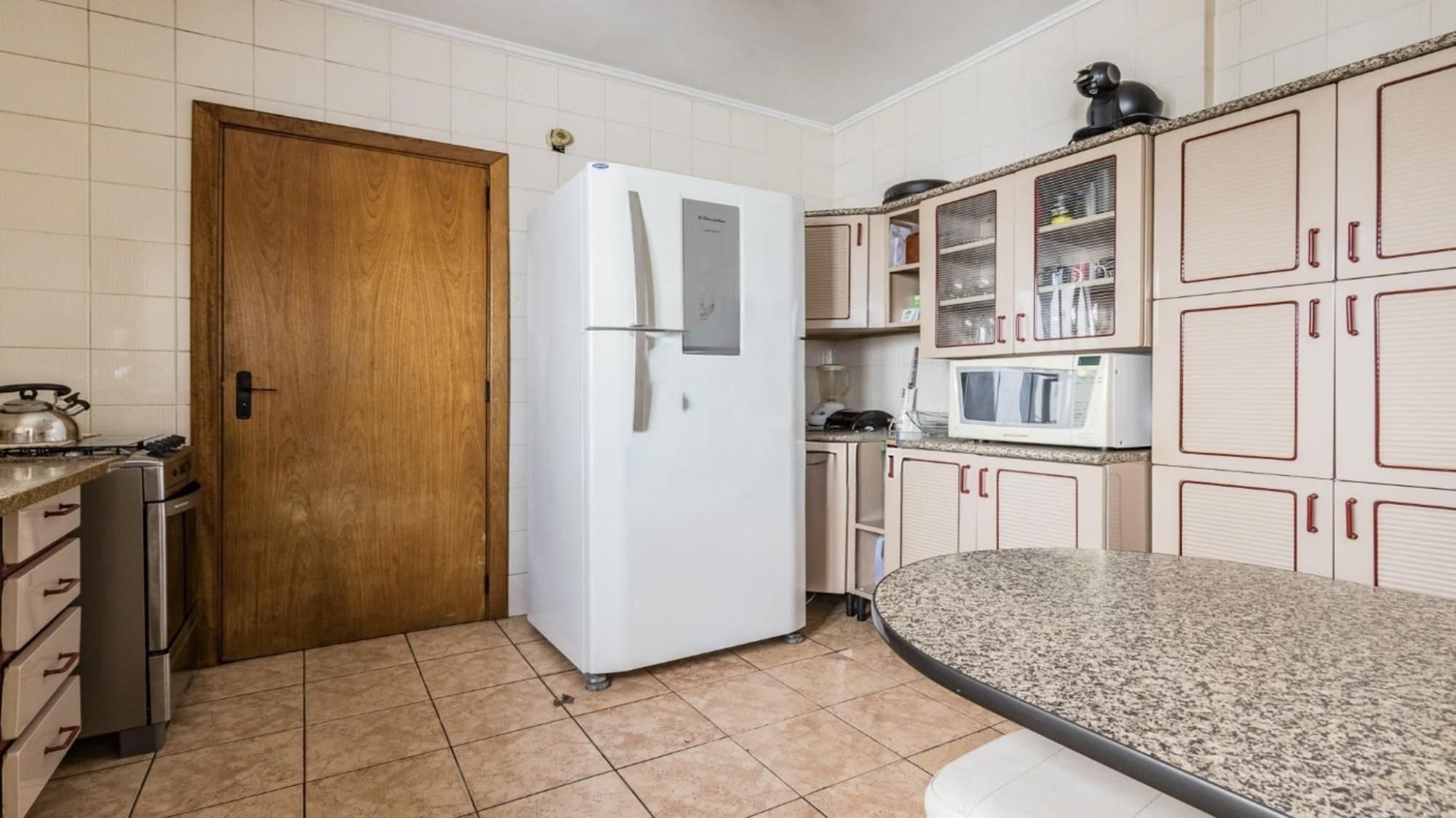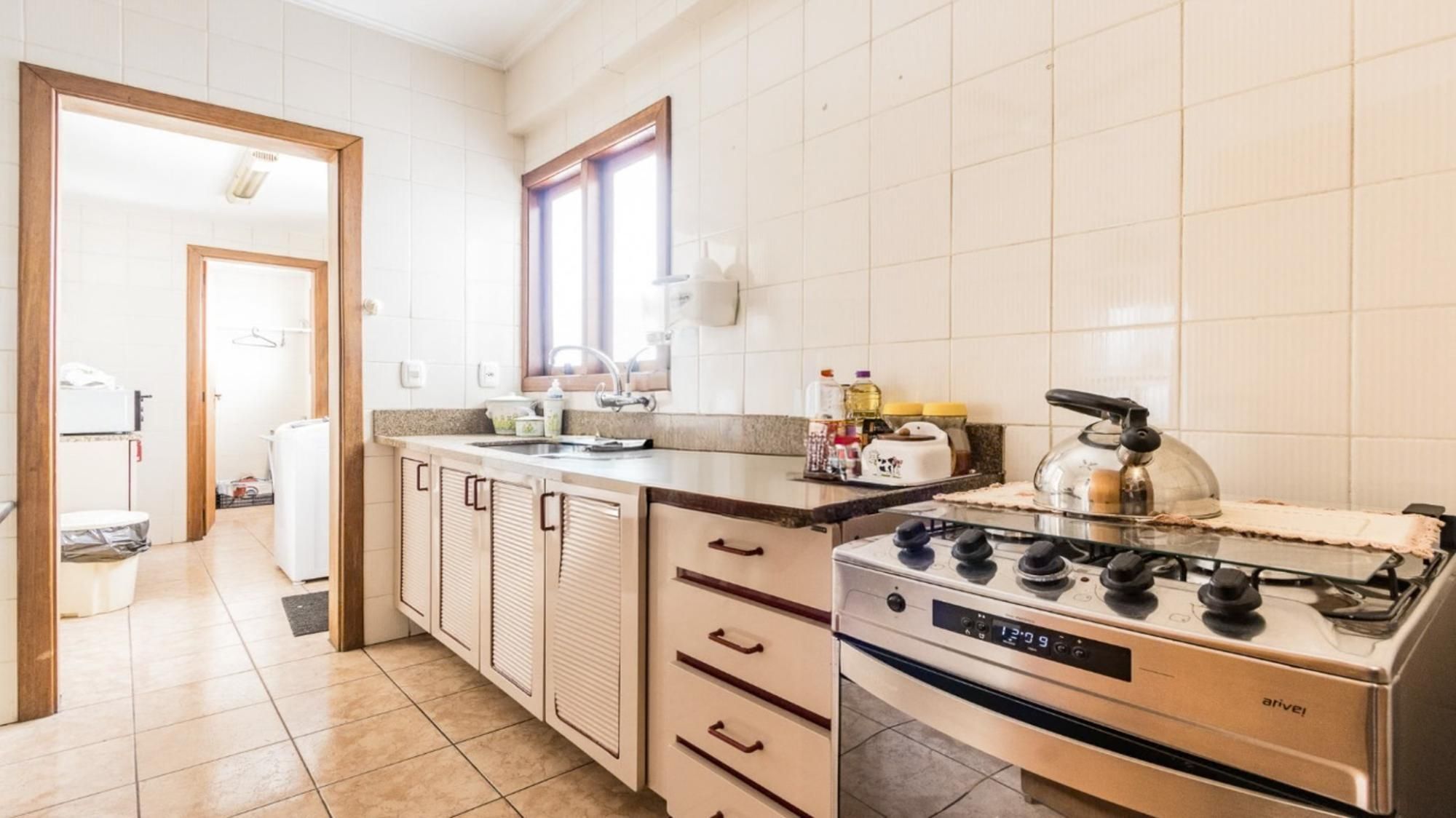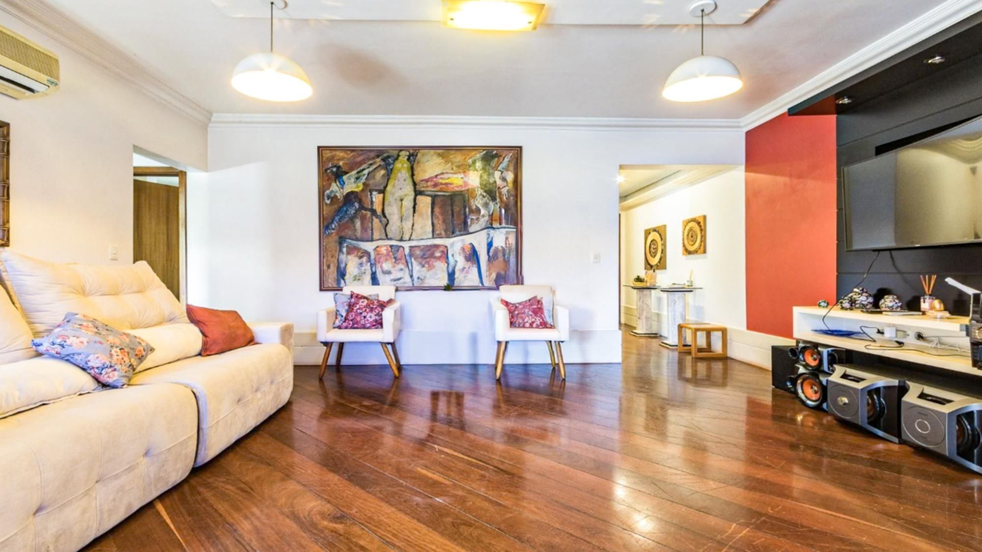 Apartamento semimobiliado com 117 m² de área privativa. Originalmente com 3 dormitórios, sendo 1 suíte, atualmente conta com 2 dormitórios, pois o terceiro foi integrado e transformado em closet e gabinete, proporcionando maior amplitude aos ambientes. Banheiro social com ventilação natural. Living amplo para 3 ambientes, com sacada fechada integrada ao living, churrasqueira e lareira. Cozinha montada, com área de serviço individual e banheiro auxiliar. Possui 2 vagas de garagem cobertas e escrituradas.