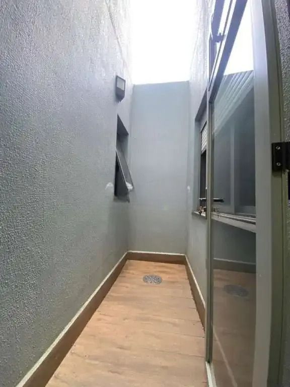 - Garagem coberta para dois carros lado a lado, com porta de acesso lateral para o interior da casa e corredor lateral de toda extensão da casa para acesso até a área de churrasco e lazer;
