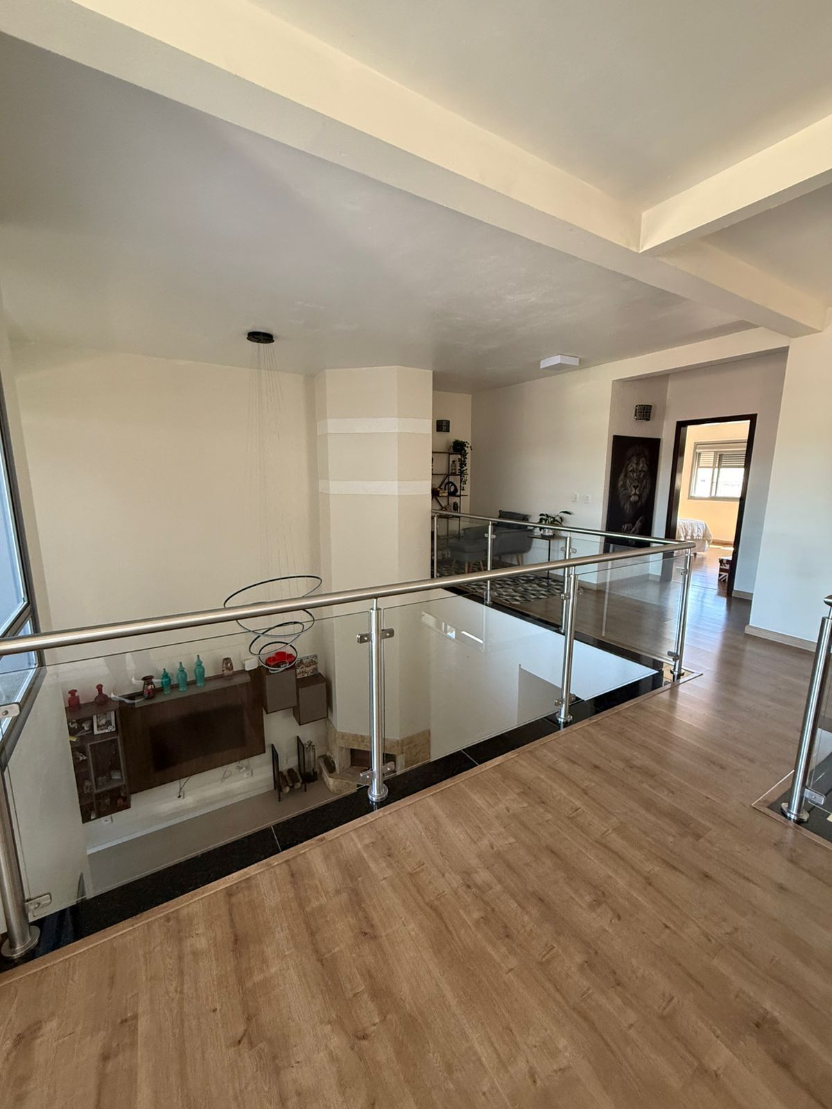 - Sala de estar conta com o pé direito duplo, cortina de 5m de comprimento motorizada, mobília planejada de alto padrão e design, sofá com encosto e assento retráteis de alto conforto para 6 lugares, lareira construída em alvenaria específica, revestida com mármore e pedra rústica;