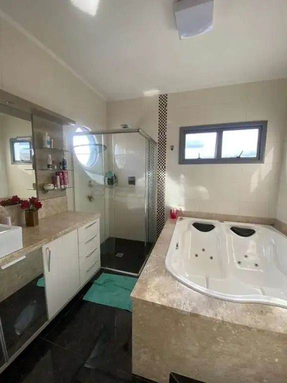 - Banheiro da master suíte conta com banheira de hidromassagem de 2 lugares, possui aquecedor próprio para manter a água quente;