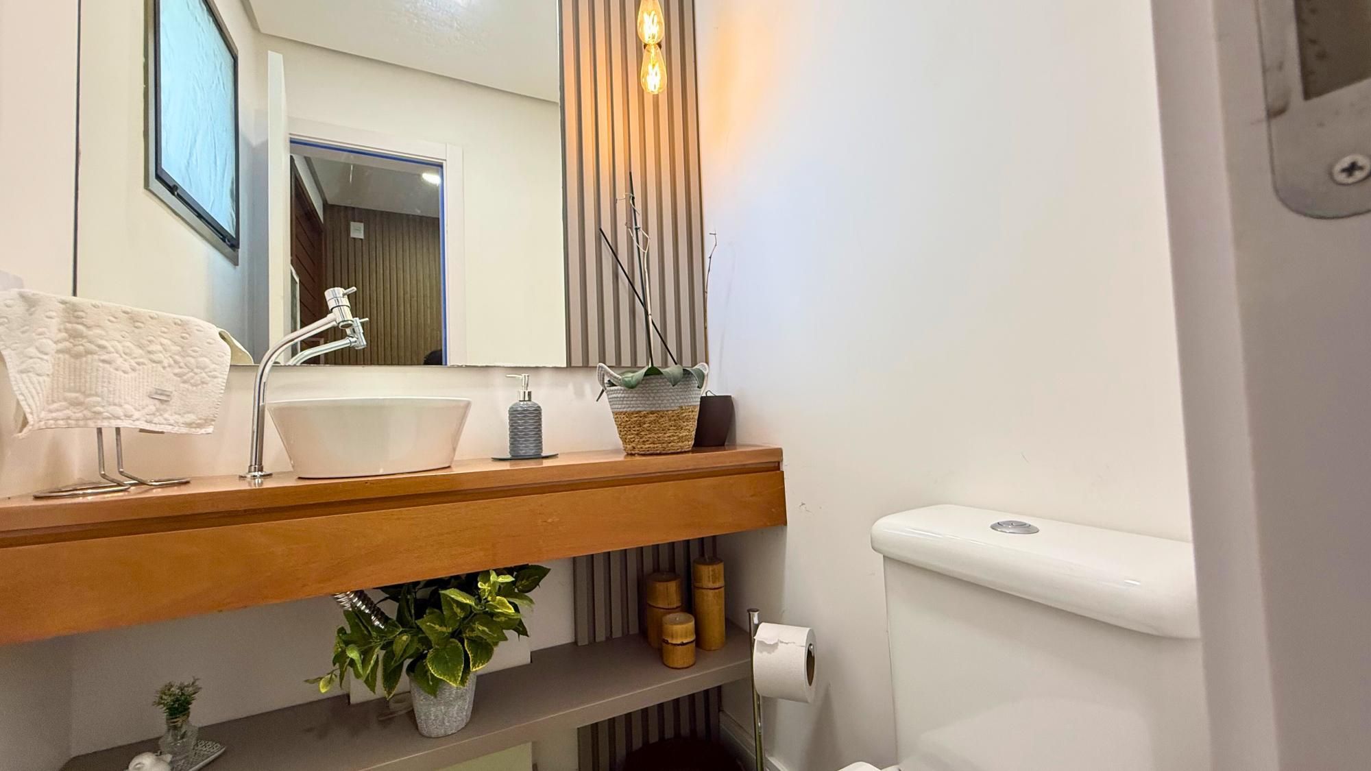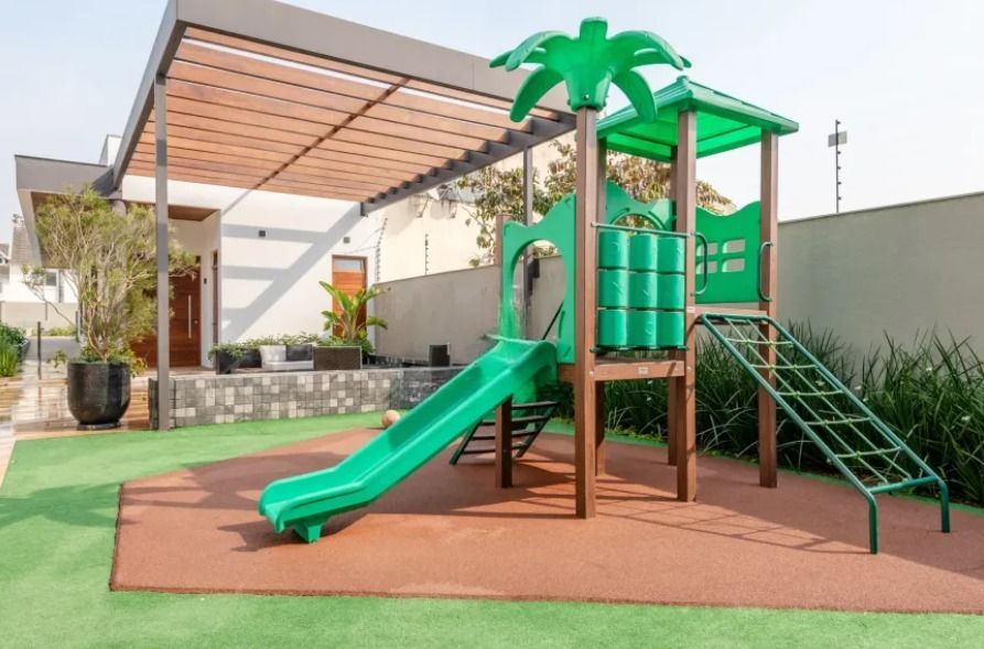 No pavimento térreo, o living integrado proporciona um espaço ideal para receber amigos e família, além de estar diretamente conectado à área externa, garantindo fluidez e sensação de amplitude. A cozinha, cuidadosamente planejada, atende com funcionalidade e design, possibilitando uma rotina prática e harmoniosa.