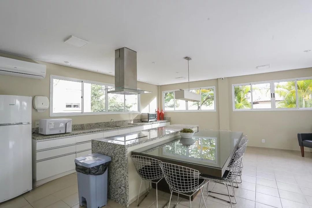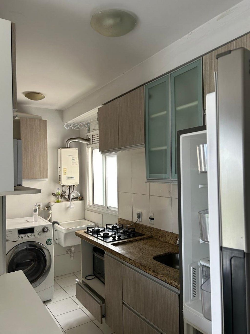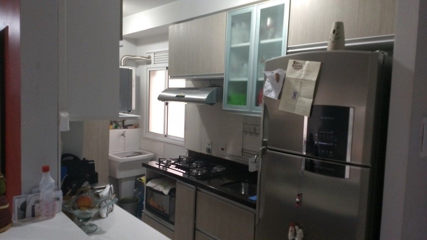 Sala ampla com sofá com sacada, janelas grandes e piso laminado, proporcionando excelente iluminação e ventilação natural. Cozinha ampla, com geladeira, forno, microondas, fogo e armários arejada e iluminada, com móveis planejados, totalmente revestida em piso cerâmico, integrada à lavanderia. Apartamento com aquecimento a gás em todos os ambientes.