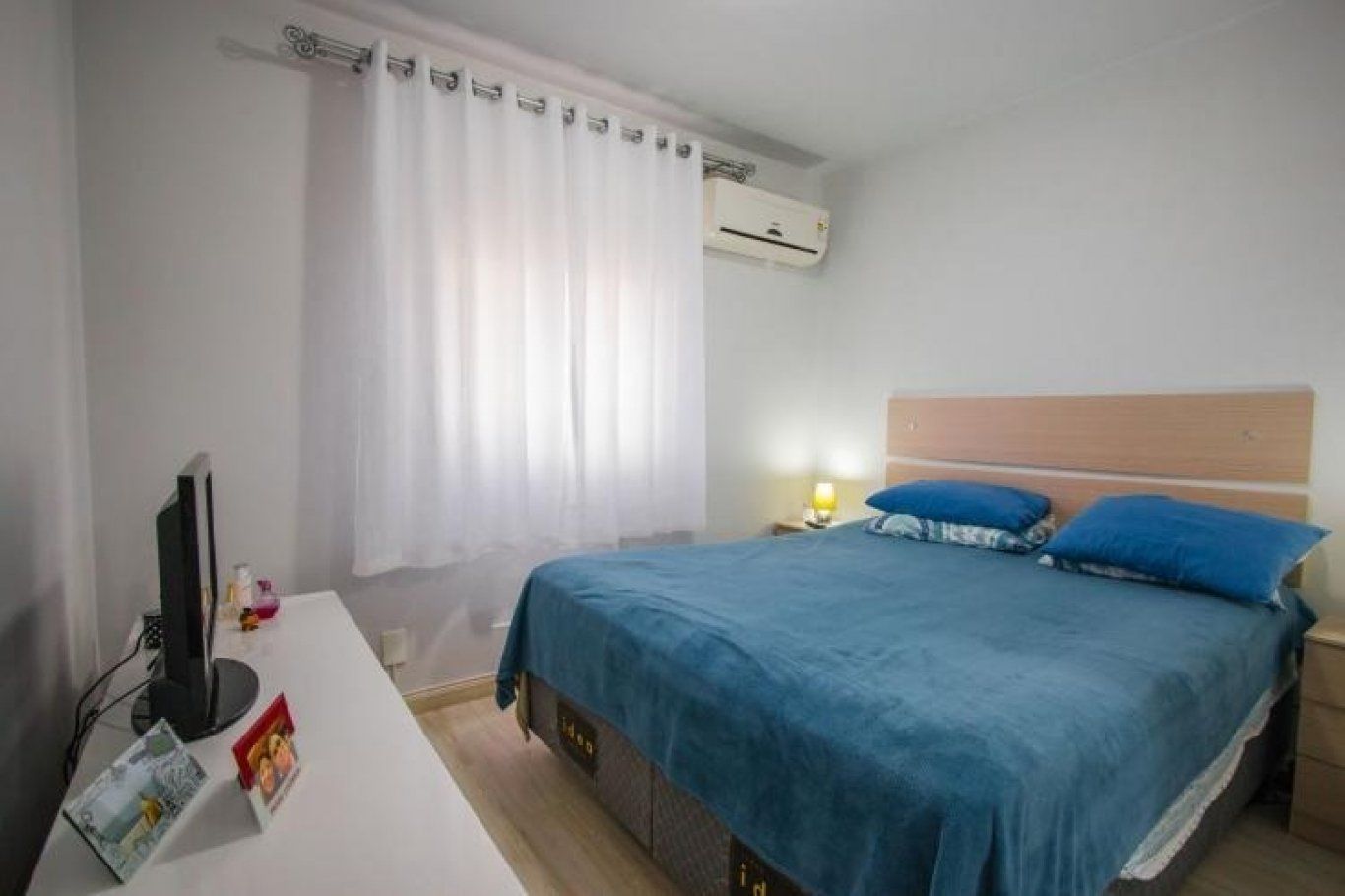 Suíte espaçosa, bem iluminada e ventilada, com janelas amplas e piso cerâmico. Dois dormitórios amplos, arejados e iluminados, com janelas grandes. Um dos quartos possui versatilidade, podendo ser utilizado como closet, escritório, despensa, biblioteca, espaço para treinos ou quarto de visitas. Banheiro auxiliar com box em vidro e janela com abertura para o exterior.