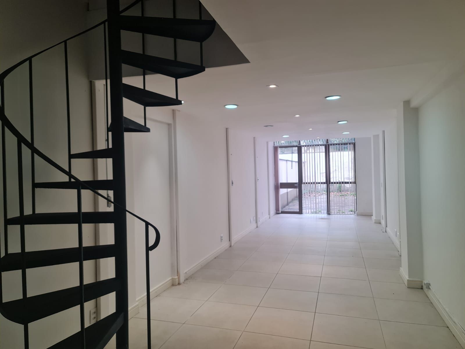 Prédio com portaria 12 horas, sala com mezanino, cozinha e banheiro na parte superior, e um terraço descoberto na parte posterior.