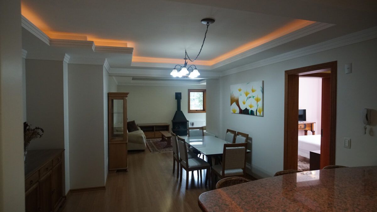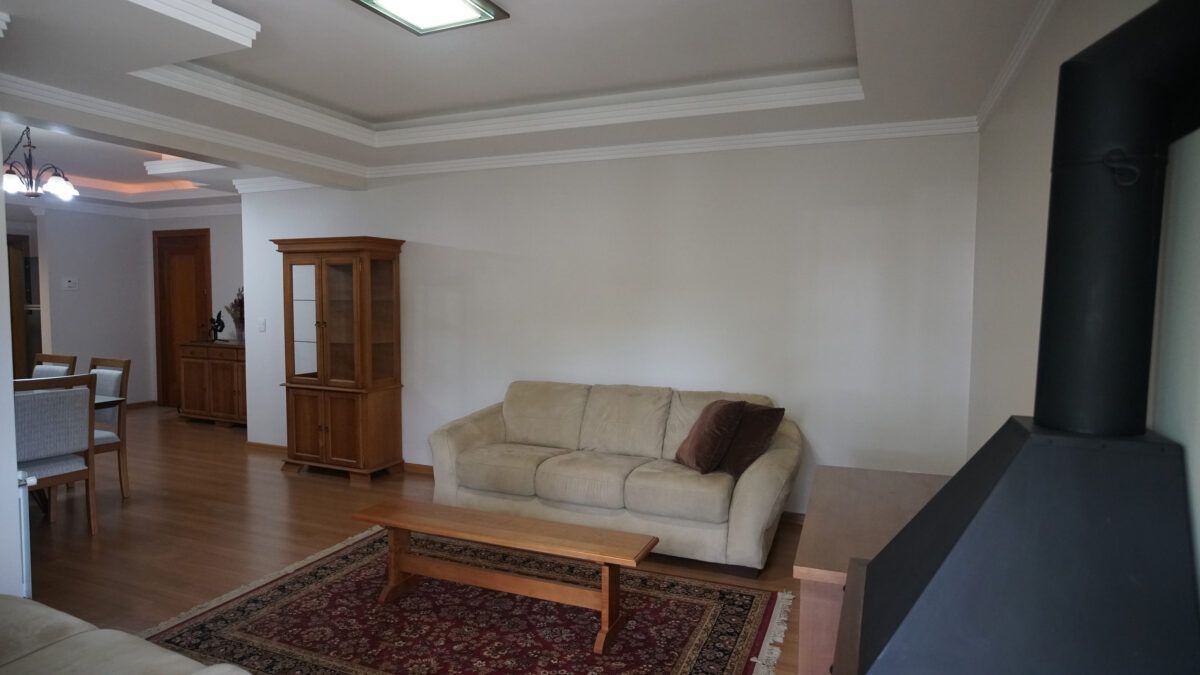 Excelnte apartamento no Centro de Gramado, de frente, com 120m² privativos, sala de estar com lareira e acesso para a sacada, sala de jantar, de 3 dormitórios sendo 1 suíte, aberturas internas e externas em madeira, Acabamento em gesso, Piso laminado, sacada fechada com Churrasqueira, Gás central individual, Central anti-incêndio: Ótima localização. Esquina com a Borges de Medeiros, próximo a mercado, lojas, restaurantes, farmácia, se localiza entre as duas principais avenidas da cidade (Borges e São Pedro), muito próxima a rua coberta (ponto principal da cidade-1,4 Km). Possui uma vaga de garagem coberta e escriturada.