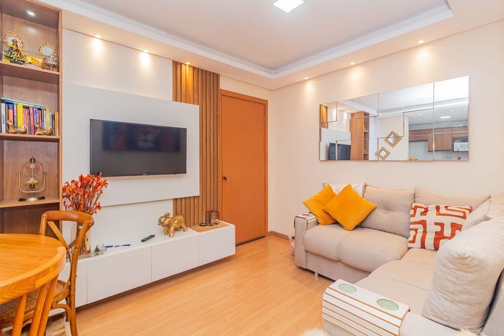 Apartamento com dois dormitórios e vaga de estacionamento escriturada. O imóvel possui living integrado à cozinha americana, equipada com móveis sob medida, além de banheiro social. Ficam no imóvel todos os móveis planejados da cozinha, dormitórios e banheiro, garantindo praticidade. O condomínio oferece infraestrutura de lazer completa com playground, brinquedoteca, salão de festas, quiosque com churrasqueira, bicicletário e segurança 24h. Agende sua visita e conheça seu novo lar!
