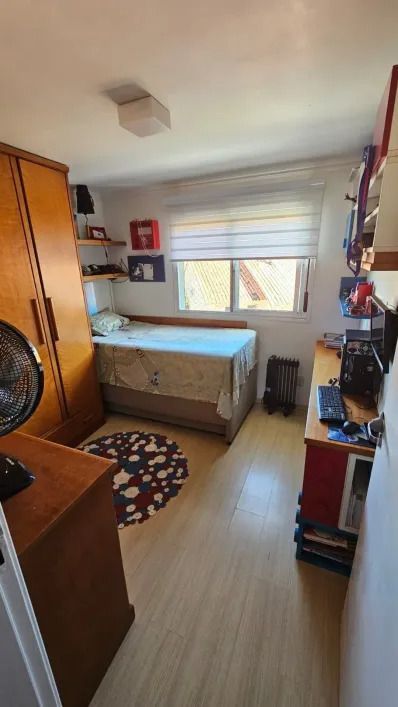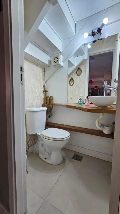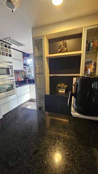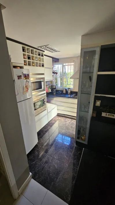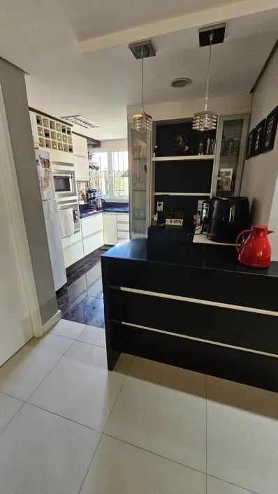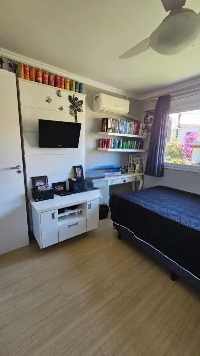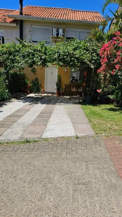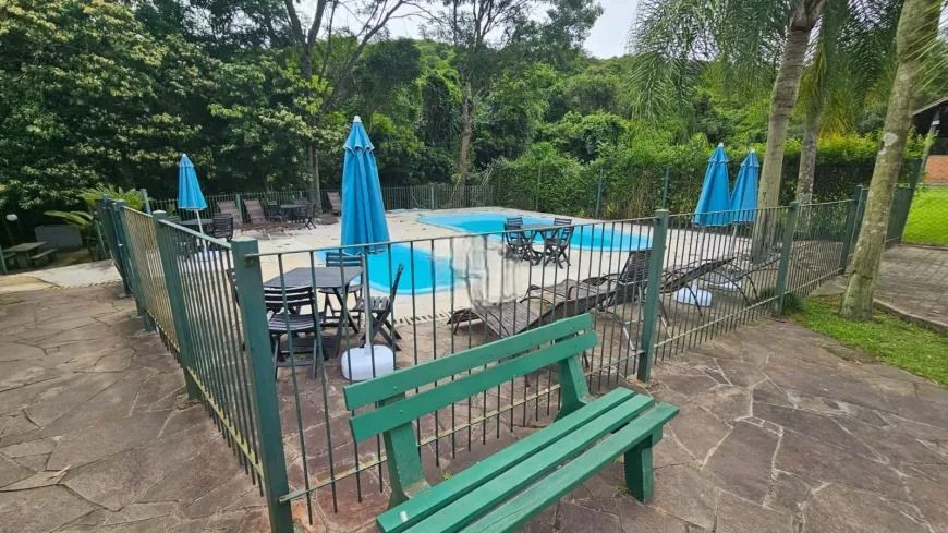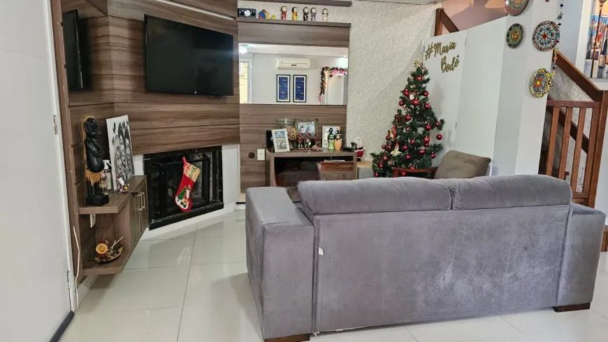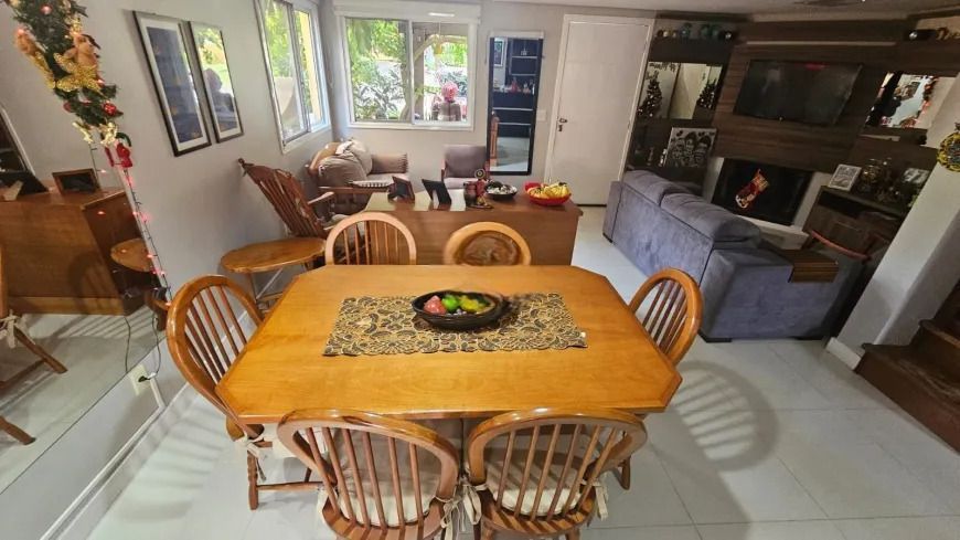 Casa em condominio fechado, com 2 pavimentos, semi mobiliada, que dispõe de 3 dormitórios, sendo 1 suíte, ampla sala de estar com lareira, lavabo, banheiro social, cozinha americana, pátio, área com churrasqueira, lavanderia e garagem para 4 carros.