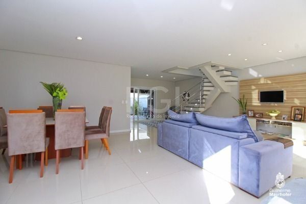 Excelente sobrado á venda no condomínio Jardins do Lago II com 170m² num terreno de 8,70x20, sendo 2 suítes, opção para o 3º dormitório, banheiro no térreo, cozinha em conceito aberto, área de serviço fechada, churrasqueira e um bom pátio. Terraço no segundo piso, espera para terraço no terceiro piso. Espera para split, área social e área intima com porcelanato, aberturas em PVC, porta pivotante e estacionamento frontal para 03 carros. Empreendimento com portaria 24 hrs, salão de festas, fitness, playground e piscinas adulto e infantil. Condomínio fica no complexo Lagos de Nova Ipanema, imóvel estuda imóvel de menor valor. Agende sua visita com nossa corretora credenciada e venha conhecer a zona sul de Porto Alegre.
