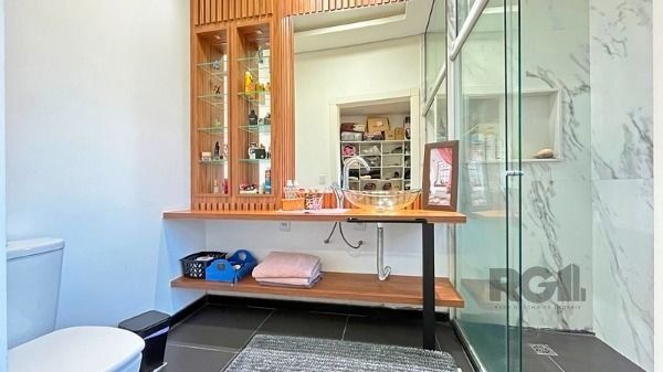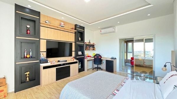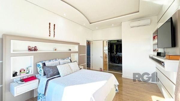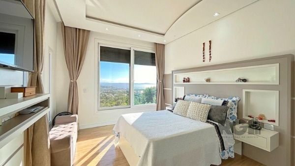 Luxuosa Casa em Condomínio de Alto Padrão com vista privilegiada e perene para o Rio Guaíba. Casa com 3 dormitórios todos com closet individual e todos suítes. Living amplo com lareira, todo envidraçado com linda vista panorâmica e acesso ao deck. Piscina com borda infinita. Cozinha ampla com churrasqueira interna e também com acesso a piscina. Garagem com espaço para até 10 carros, amplo espaço montagem de adega. Casa deslumbrante.
